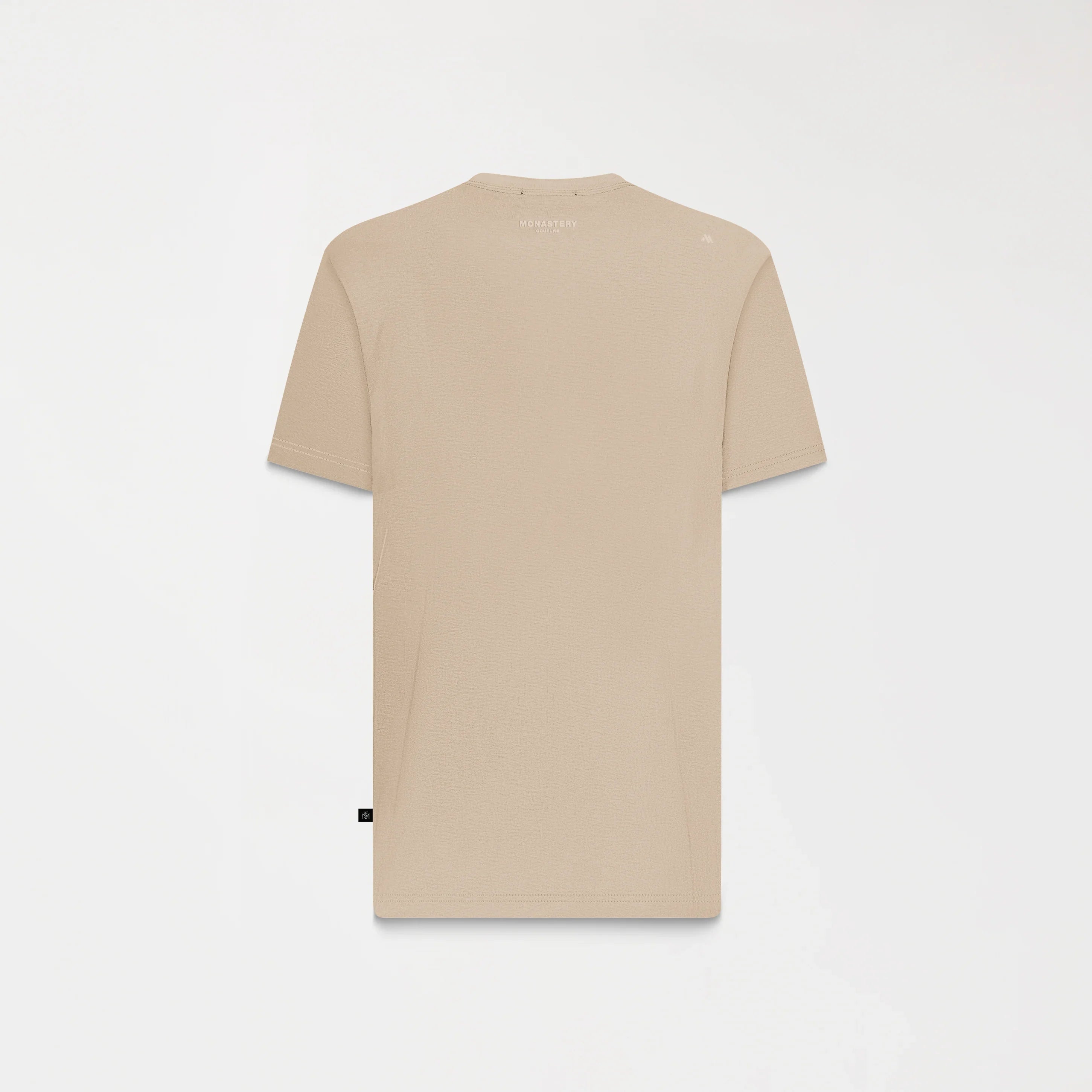 En el frente, un aplique metálico distintivo de la marca aporta carácter y profundidad, convirtiéndose en el punto focal del diseño. En la espalda, los logos insignia se presentan mediante técnica de estampado plano, logrando un acabado limpio y atemporal que refuerza la identidad exclusiva de Monastery.
