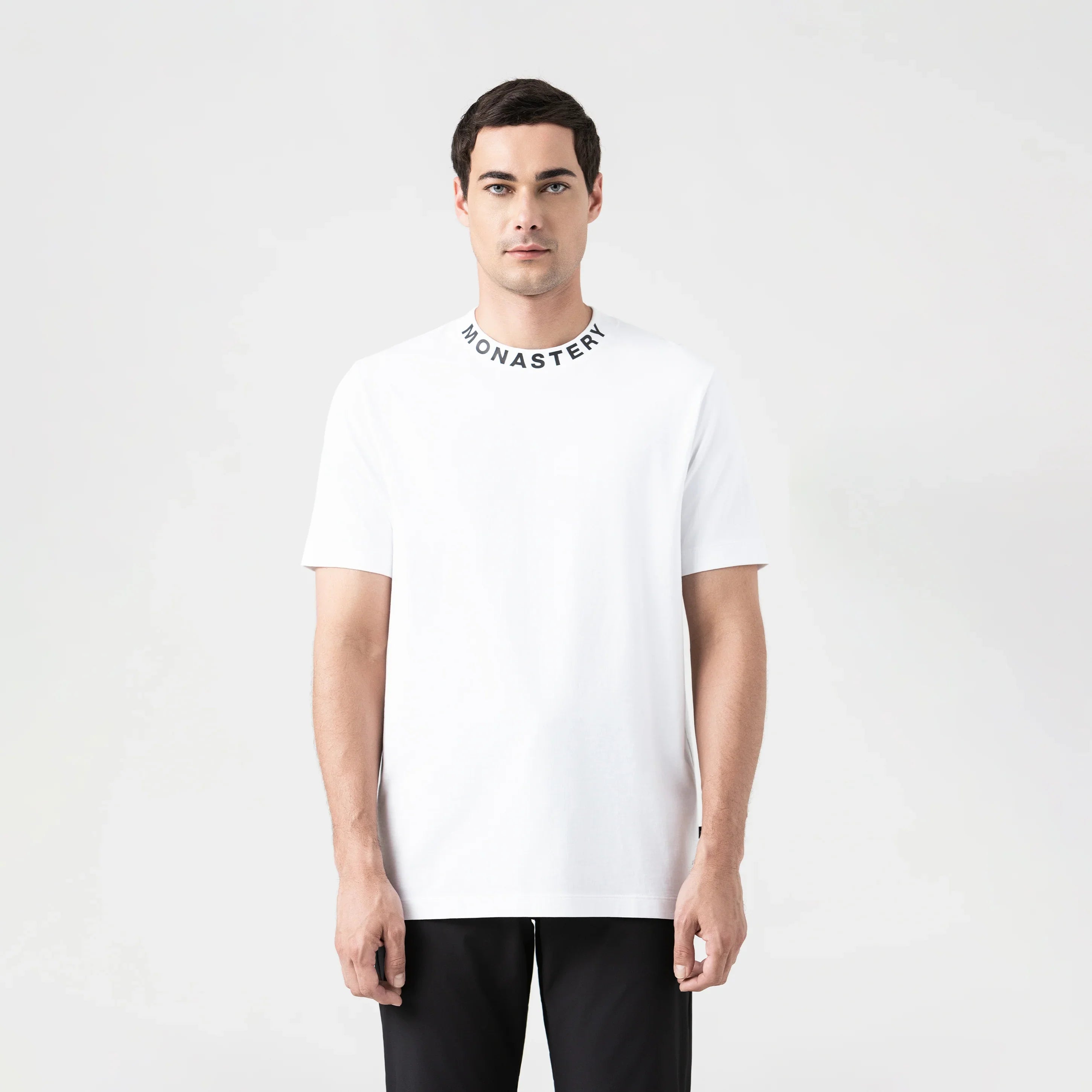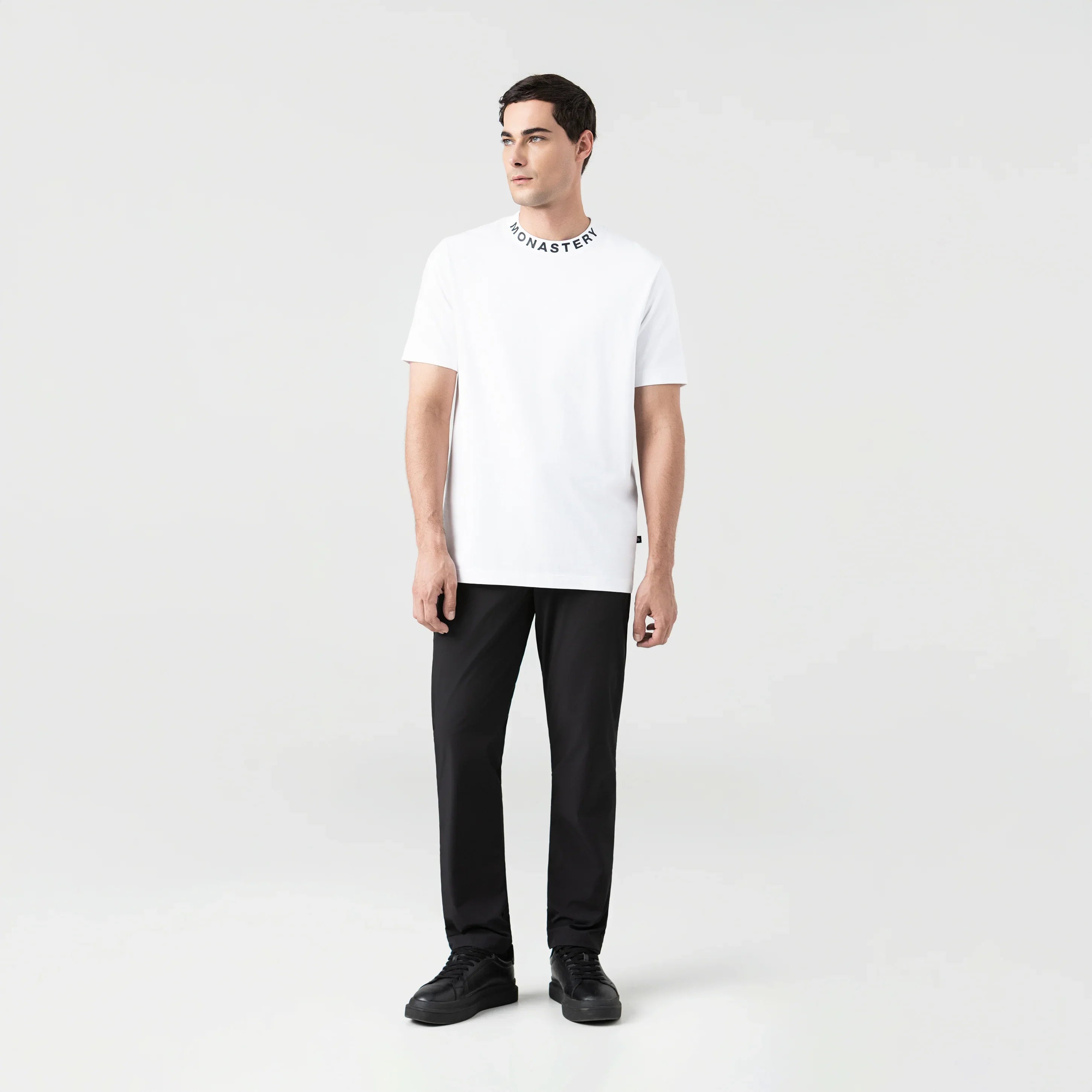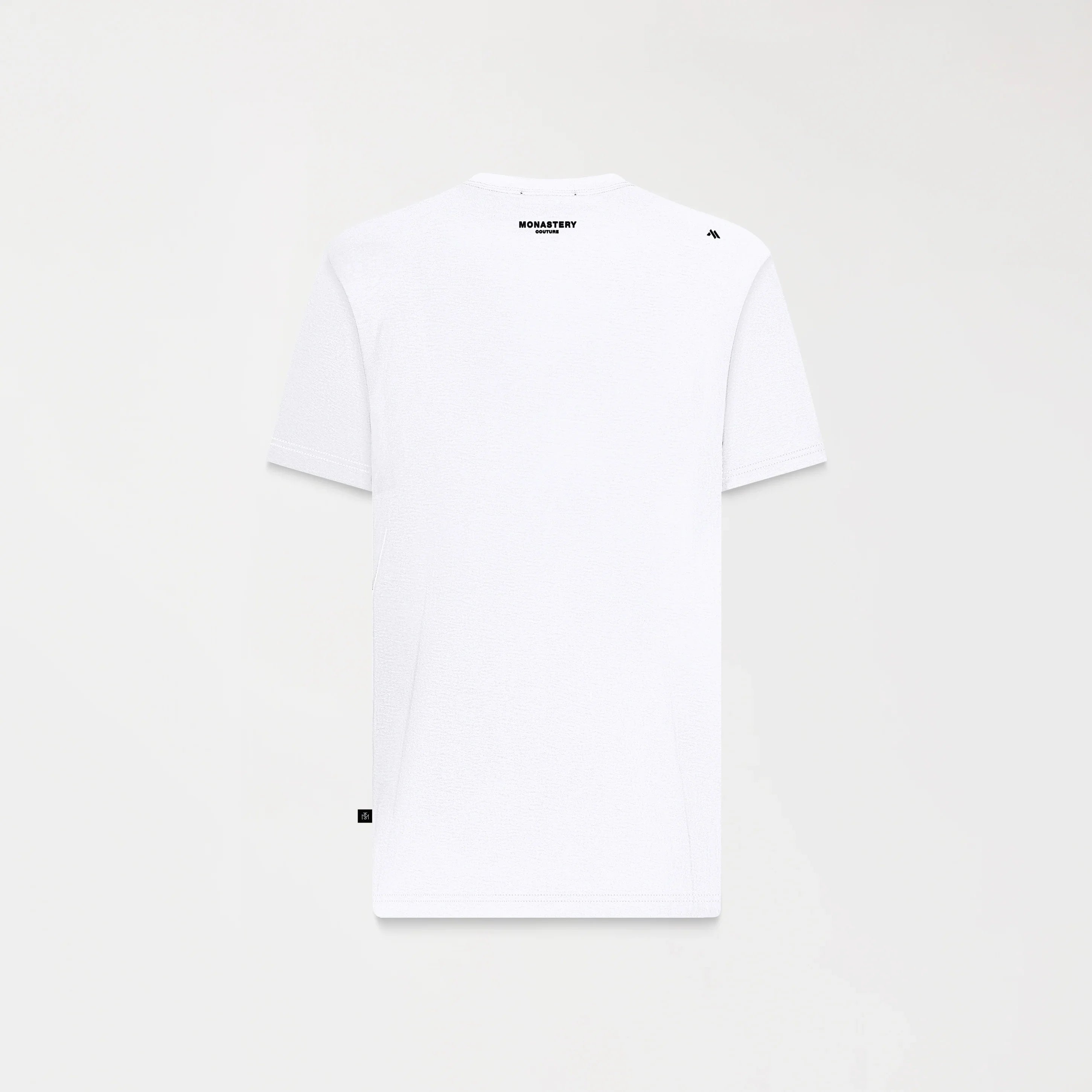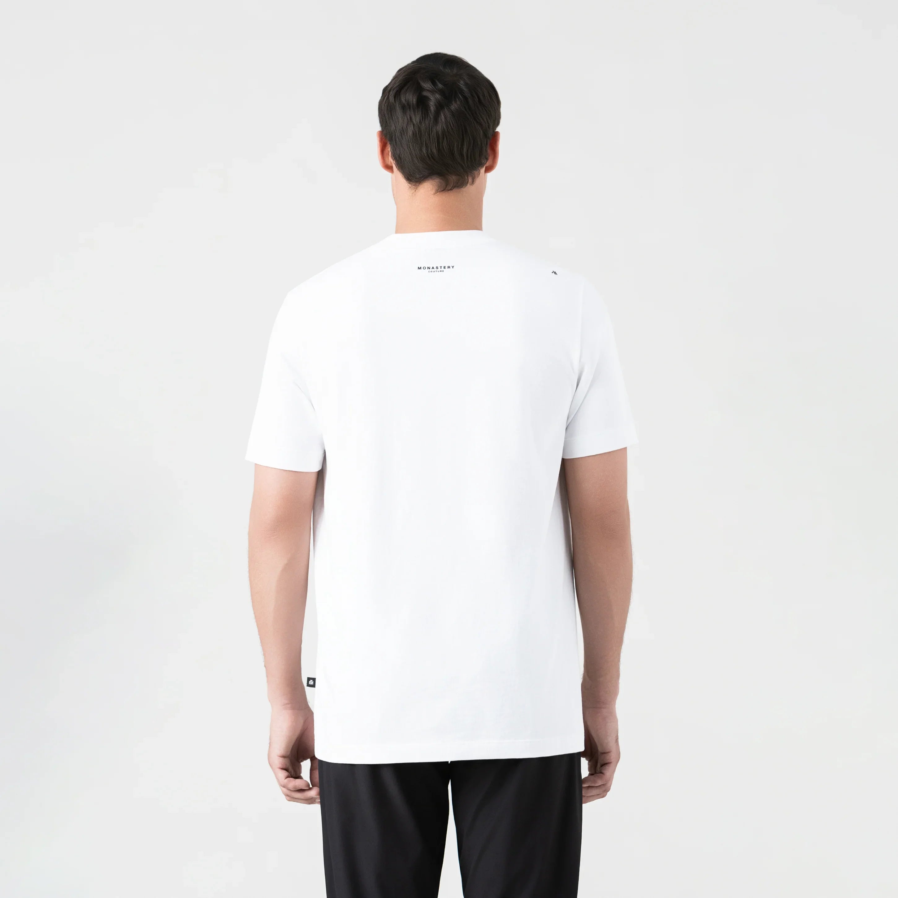 T-shirt confeccionada en algodón premium, de silueta regular y cuello en rib de 3 cm, pensada para reinterpretar lo esencial desde una estética sofisticada y contemporánea. Su diseño limpio y versátil se complementa con un estampado plano sutil en el cuello, que aporta un detalle inesperado y distintivo.