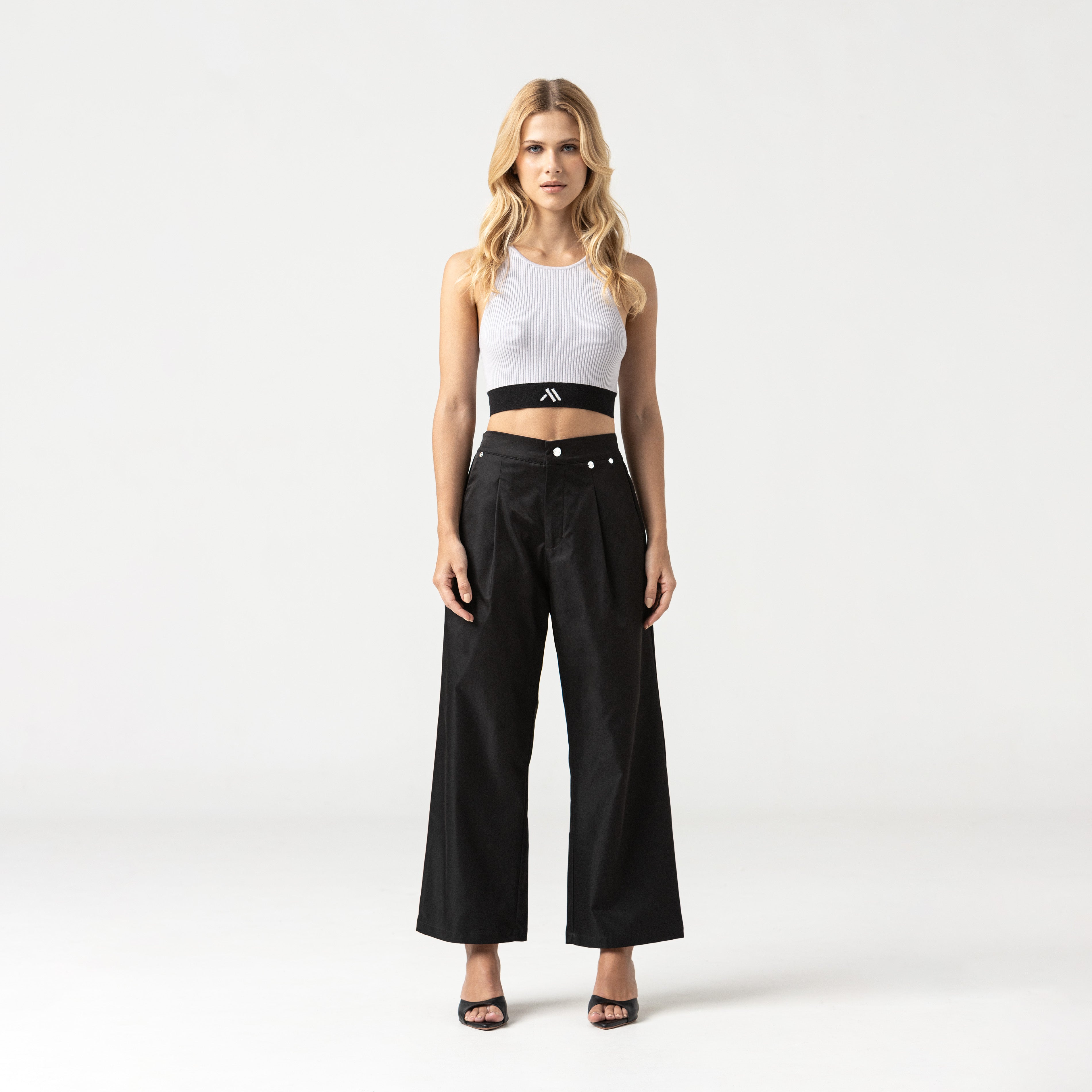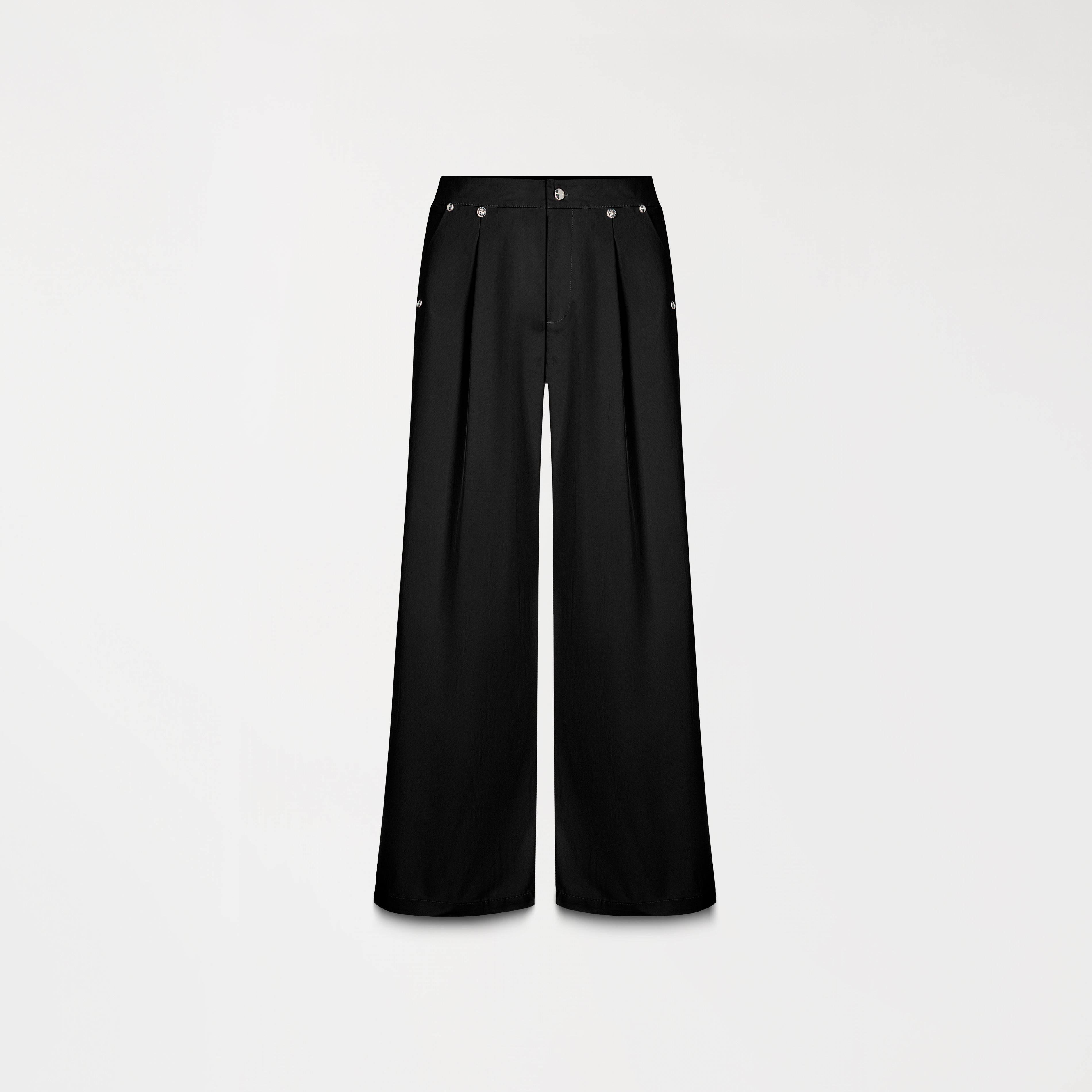 Actualizar disponibilidadPantalón para mujer silueta amplia elaborado con la base textil Moretti que ofrece un ajuste cómodo y fluido. Está diseñado con un estilo moderno y versátil, ideal para quienes buscan comodidad sin sacrificar el diseño. En la parte frontal, destaca una placa metálica con baño de plata que aporta un toque distintivo de la marca. Los bolsillos agregan un toque práctico, mientras que el ribete en la parte posterior del pantalón le da un detalle elegante y sofisticado.