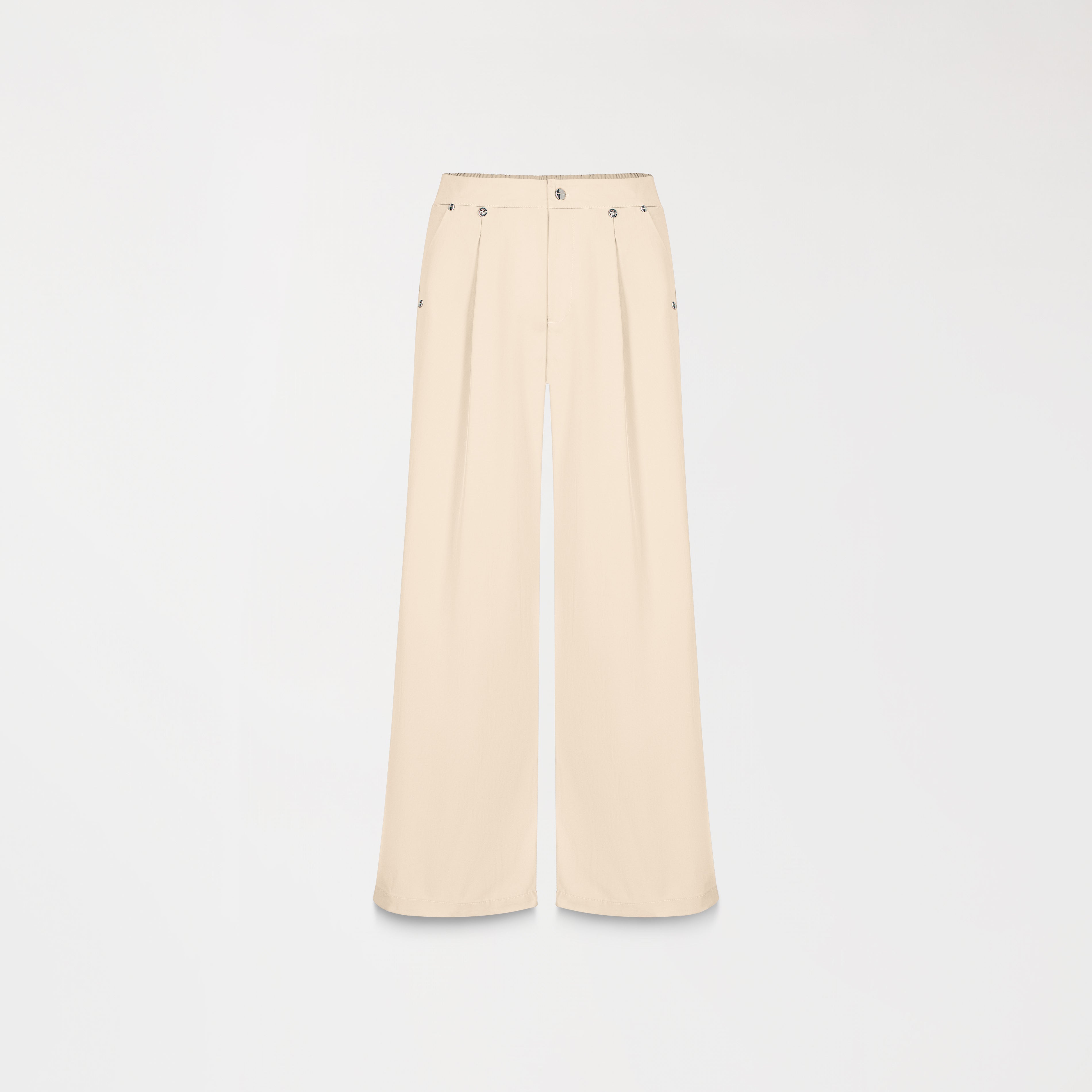 Actualizar disponibilidadPantalón para mujer silueta amplia elaborado con la base textil Moretti que ofrece un ajuste cómodo y fluido. Está diseñado con un estilo moderno y versátil, ideal para quienes buscan comodidad sin sacrificar el diseño. En la parte frontal, destaca una placa metálica con baño de plata que aporta un toque distintivo de la marca. Los bolsillos agregan un toque práctico, mientras que el ribete en la parte posterior del pantalón le da un detalle elegante y sofisticado.