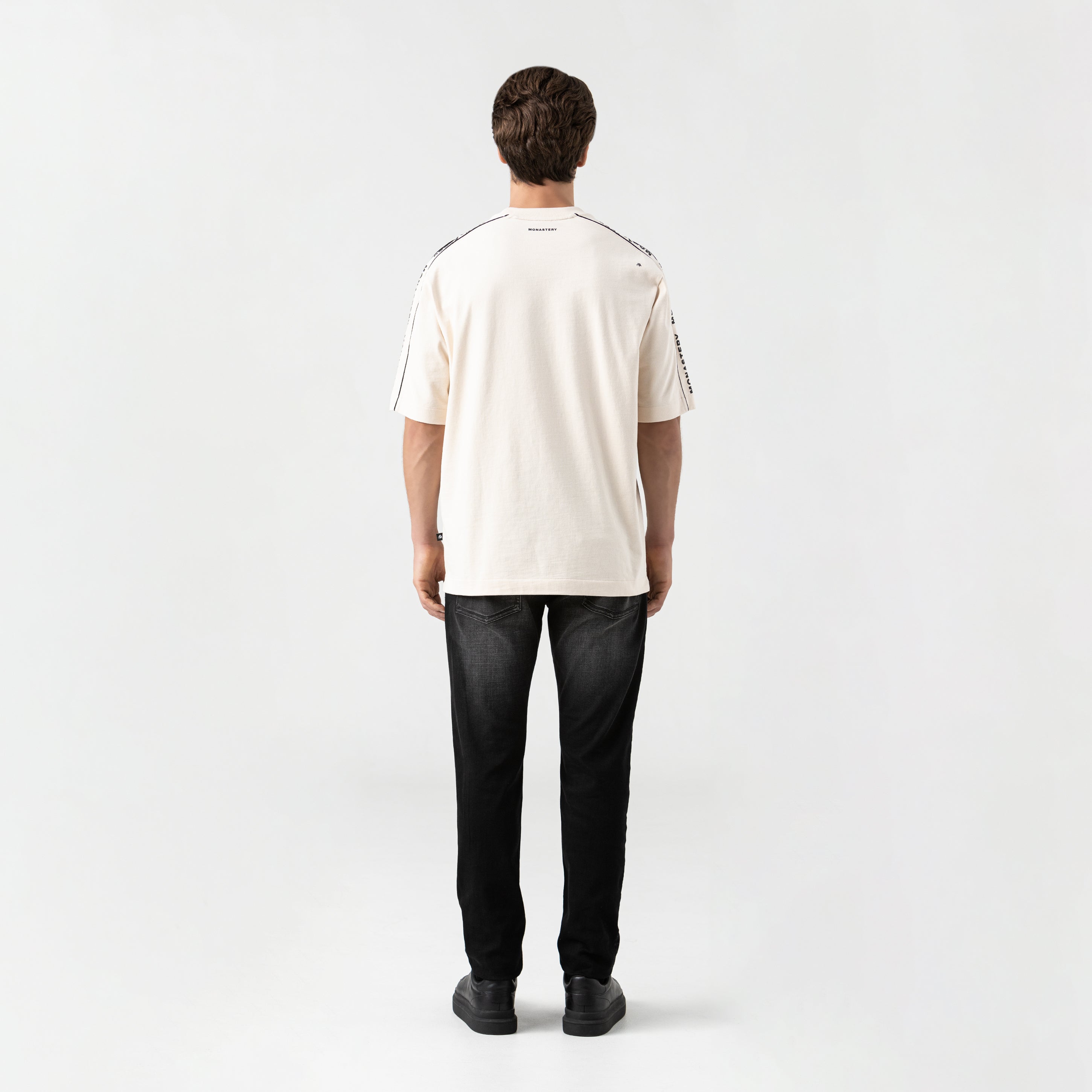 Oversized camiseta tela Monastery es una declaración de control y diseño milimétrico. Confeccionada en tela Monastery, esta camiseta de fit oversized redefine los códigos del minimalismo a través de la construcción. Su cuello en rib de 2.5 cm marca el punto de partida de una silueta deliberadamente amplia, compensada por un corte en mangas que aporta tensión estructural. El detalle distintivo: un sesgo vivo en contraste, que traza una línea precisa y visualmente disruptiva, como una incisión limpia sobre una superficie perfecta. Es una pieza para el hombre que entiende que el verdadero lujo está en los detalles.