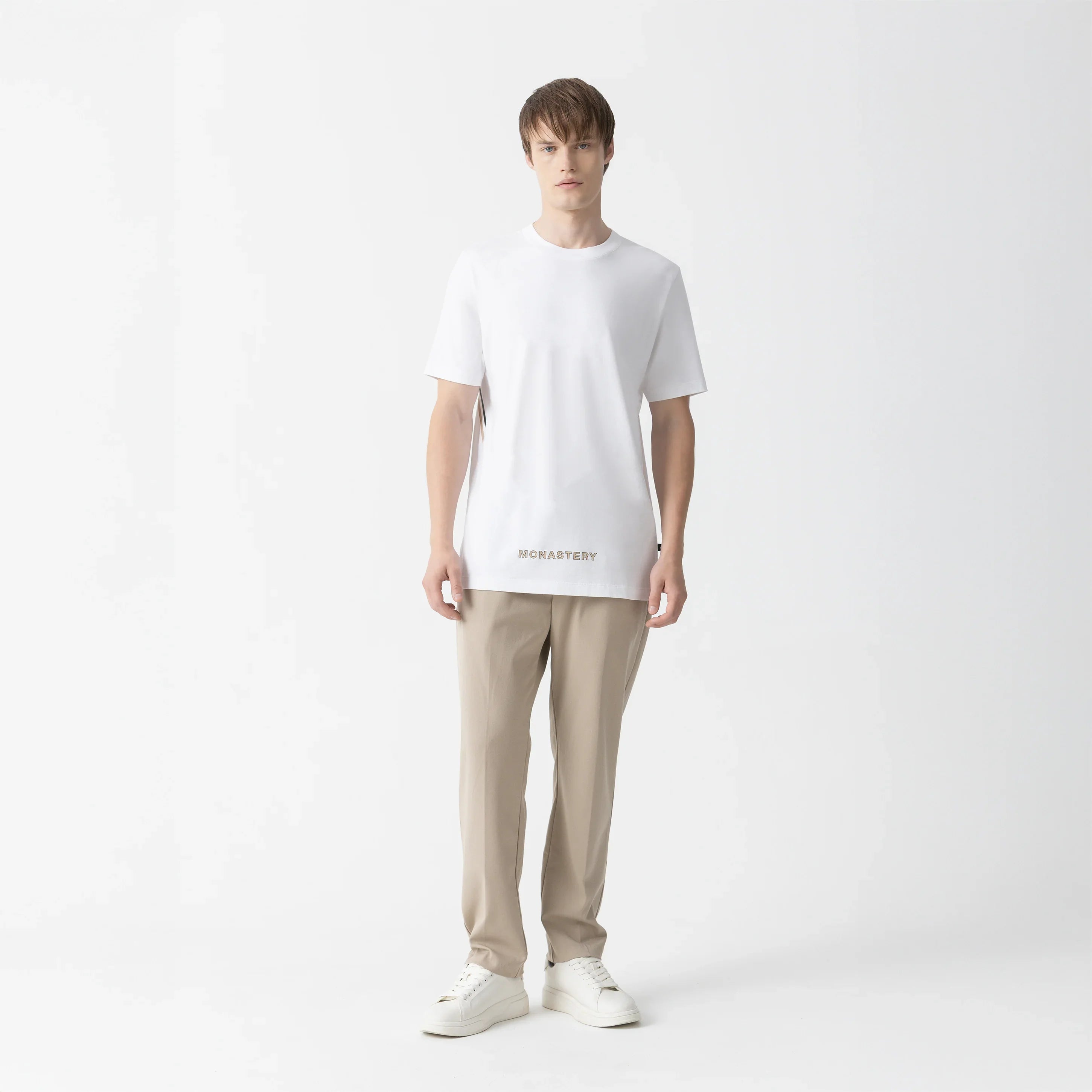 Cairo es una T-shirt masculina de silueta regular confeccionada en algodón MST, reconocido por su suavidad y durabilidad. En el frente y la espalda presenta estampados aplicados en técnica plastisol plano, que proporcionan una superficie limpia y bien definida. Diseñada para un uso casual con un enfoque gráfico sutil pero intencional, es una prenda versátil que encarna la esencia contemporánea de Monastery.