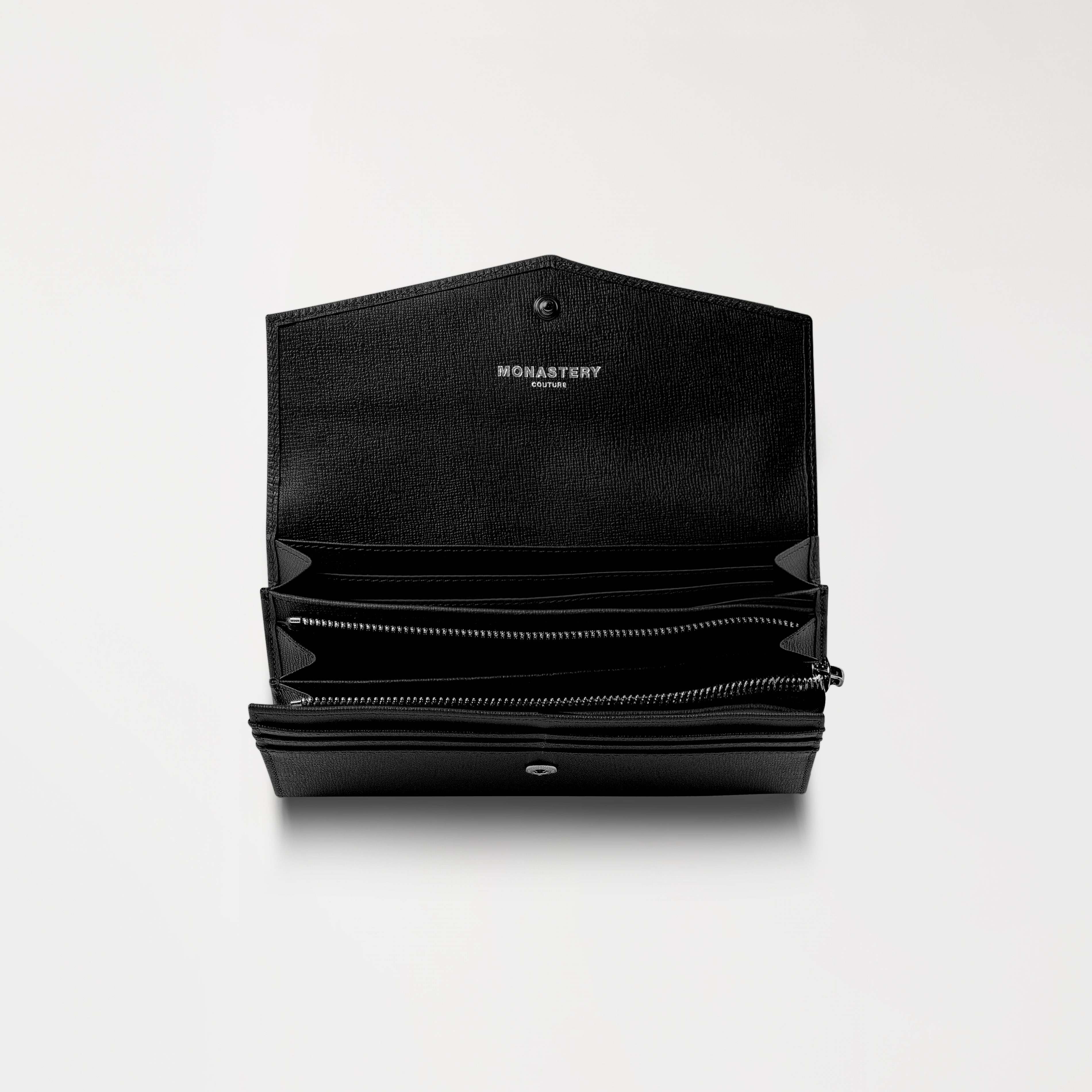 Actualizar disponibilidadBilletera de mujer tipo sobre, elaborada en cuero de alta calidad, ideal para quienes buscan un accesorio con estilo y gran capacidad. Su diseño incluye un interior amplio, con dos compartimentos principales, un bolsillo central con cierre y múltiples ranuras para tarjetas, que permiten una organización eficiente. En el frente, incorpora un aplique metálico en tono plata brillante, que aporta un detalle sofisticado. El interior incluye la marca grabada en clisé, reflejando su identidad y acabado refinado, disponible en dos versiones de color: negro y rojo.