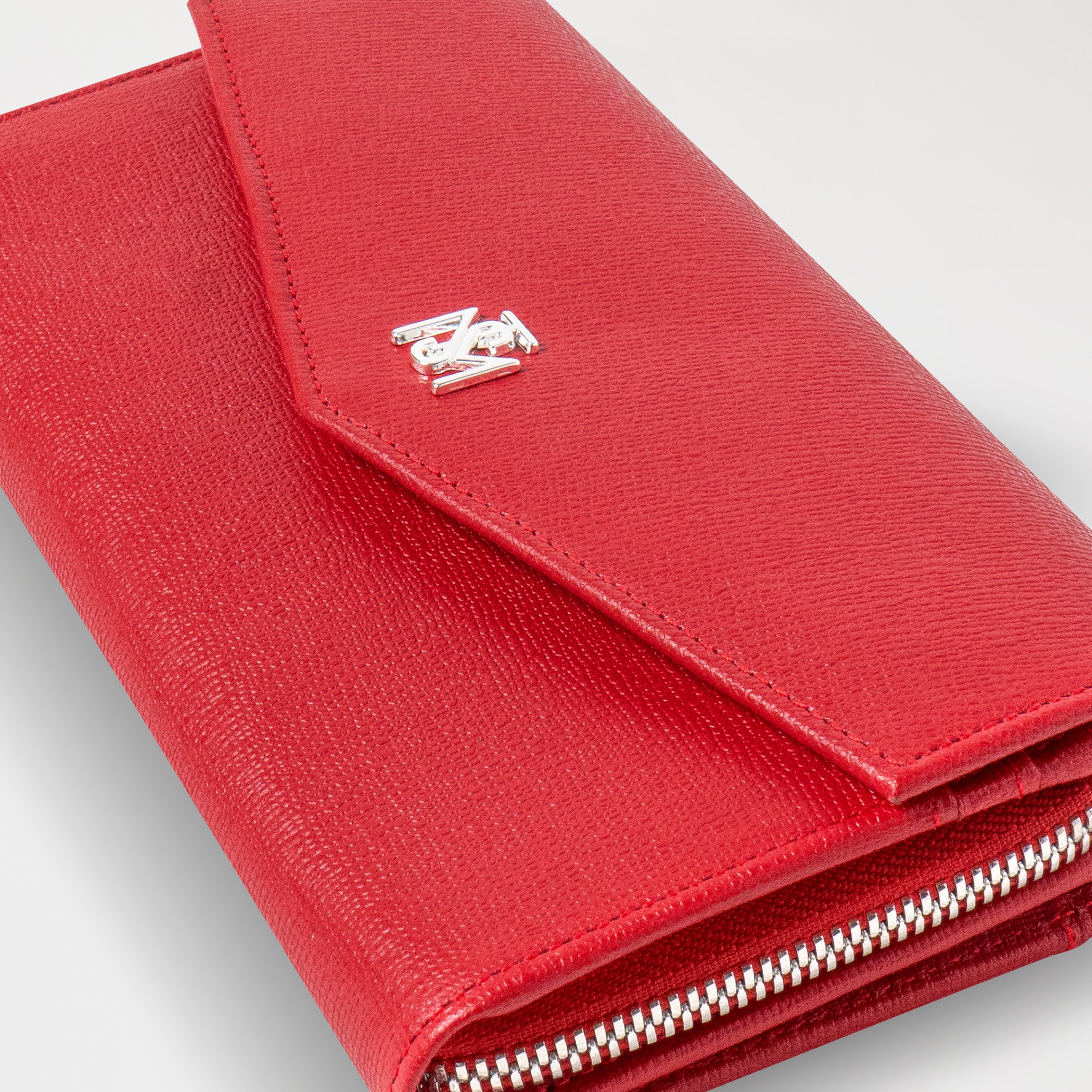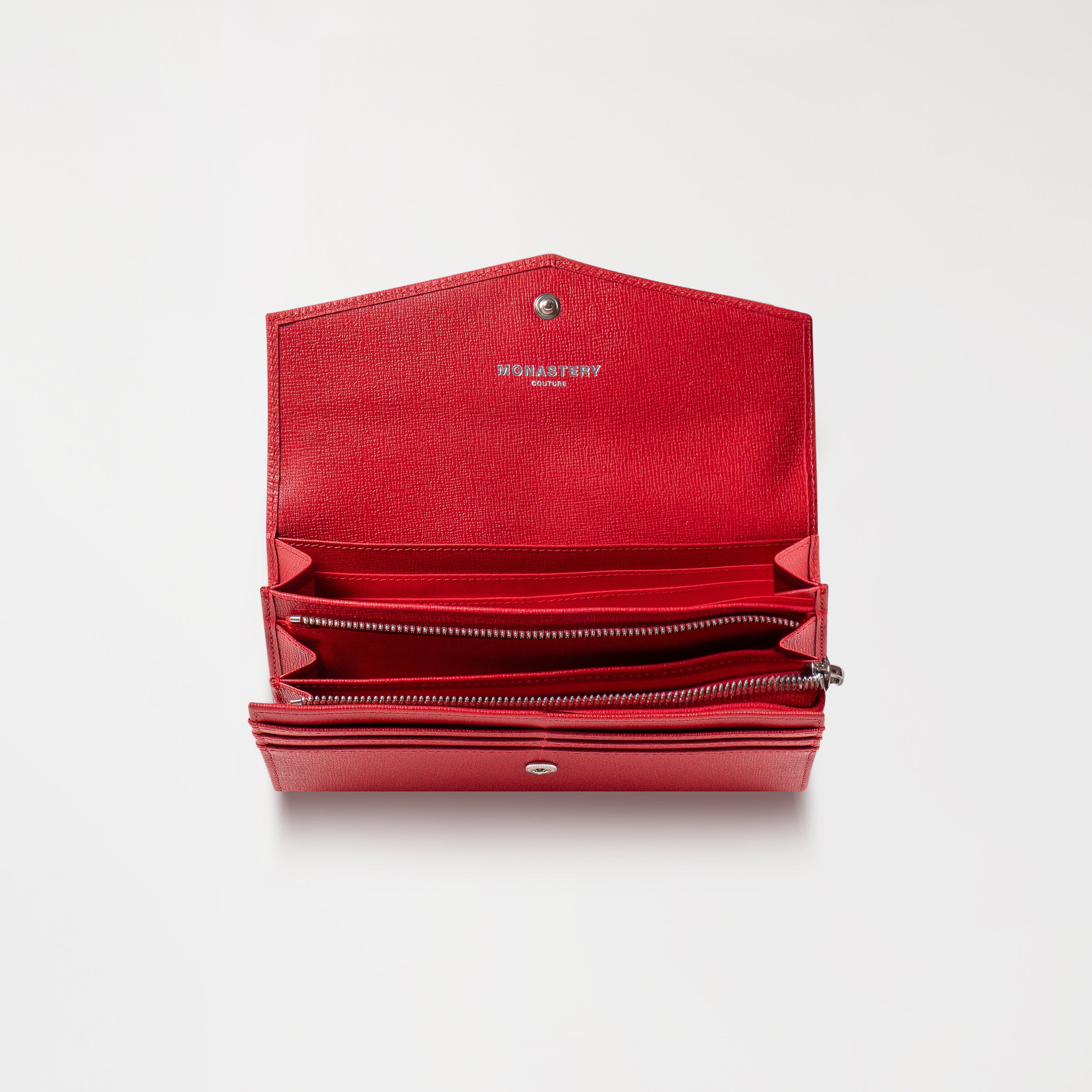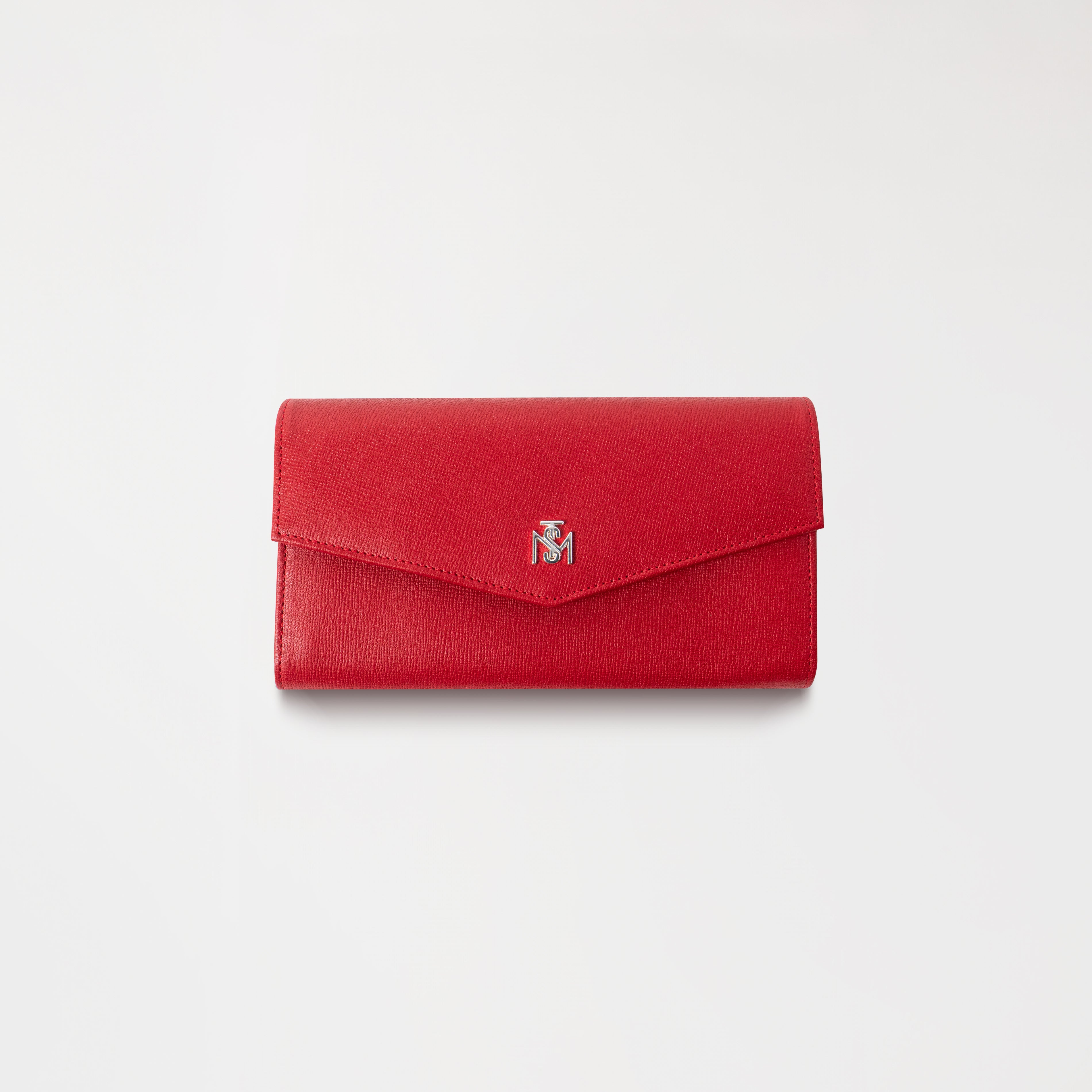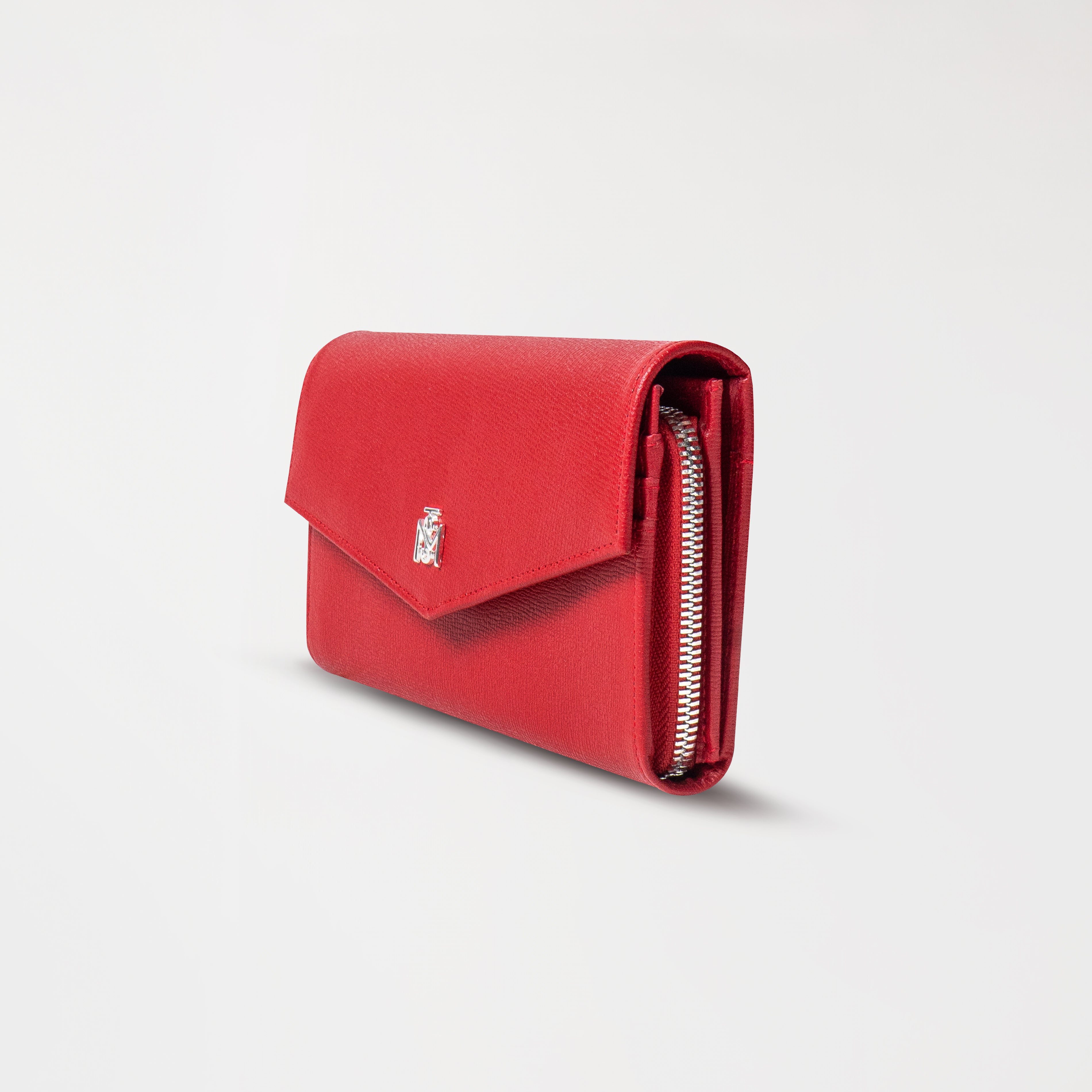 Actualizar disponibilidadBilletera de mujer tipo sobre, elaborada en cuero de alta calidad, ideal para quienes buscan un accesorio con estilo y gran capacidad. Su diseño incluye un interior amplio, con dos compartimentos principales, un bolsillo central con cierre y múltiples ranuras para tarjetas, que permiten una organización eficiente. En el frente, incorpora un aplique metálico en tono plata brillante, que aporta un detalle sofisticado. El interior incluye la marca grabada en clisé, reflejando su identidad y acabado refinado, disponible en dos versiones de color: negro y rojo.