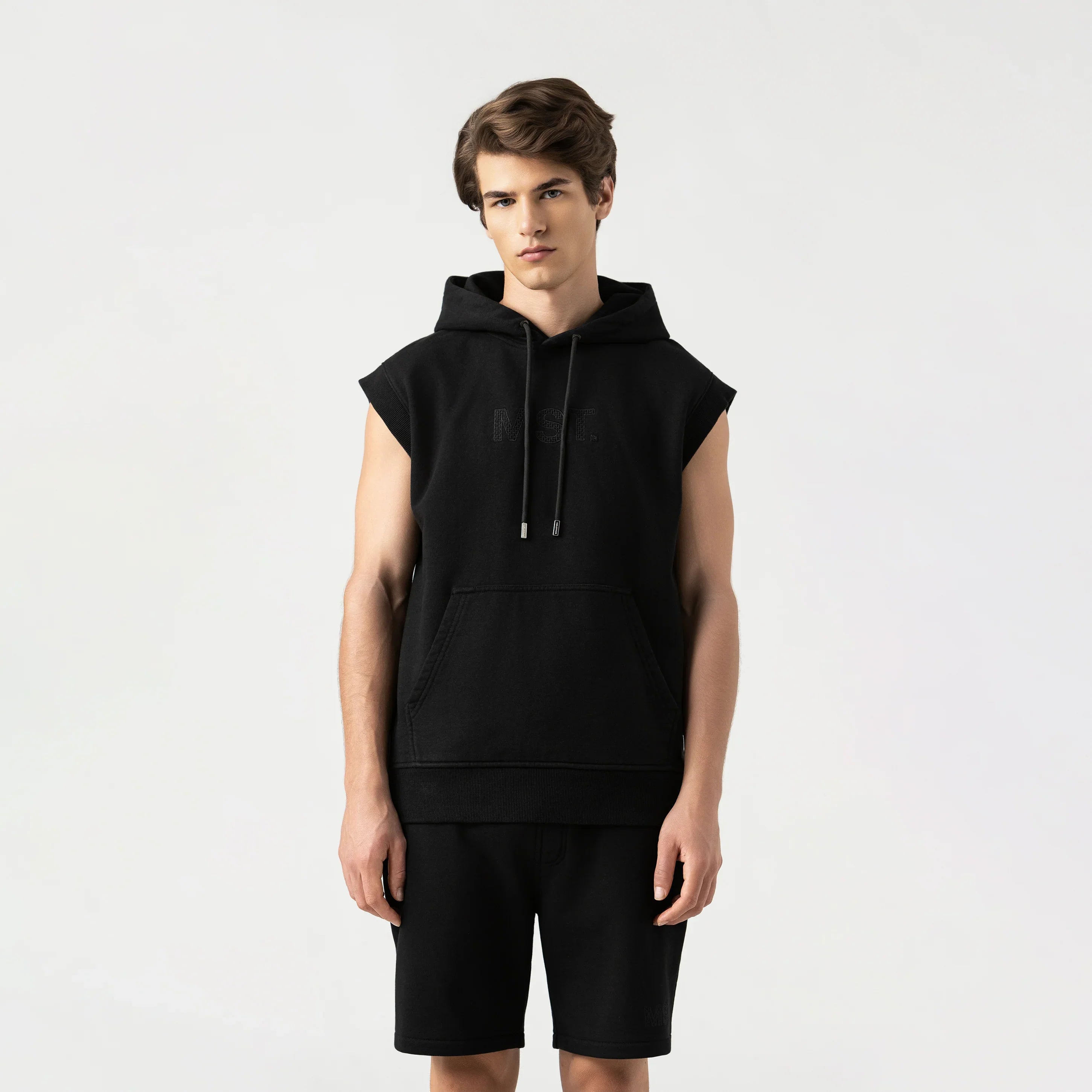 Chaleco con capucha integrada, elaborado en algodón de alta calidad que combina confort, resistencia y un estilo urbano contemporáneo. Las mangas en rib tejido aportan ajuste y comodidad, mientras que el fajón en rib define la silueta con precisión. En el frente, un bordado distintivo refuerza la identidad gráfica de la prenda, acompañado de un bolsillo tipo canguro funcional que suma practicidad. Los insumos contramarcados completan el diseño, consolidando una pieza versátil que equilibra modernidad y carácter con sello Monastery.