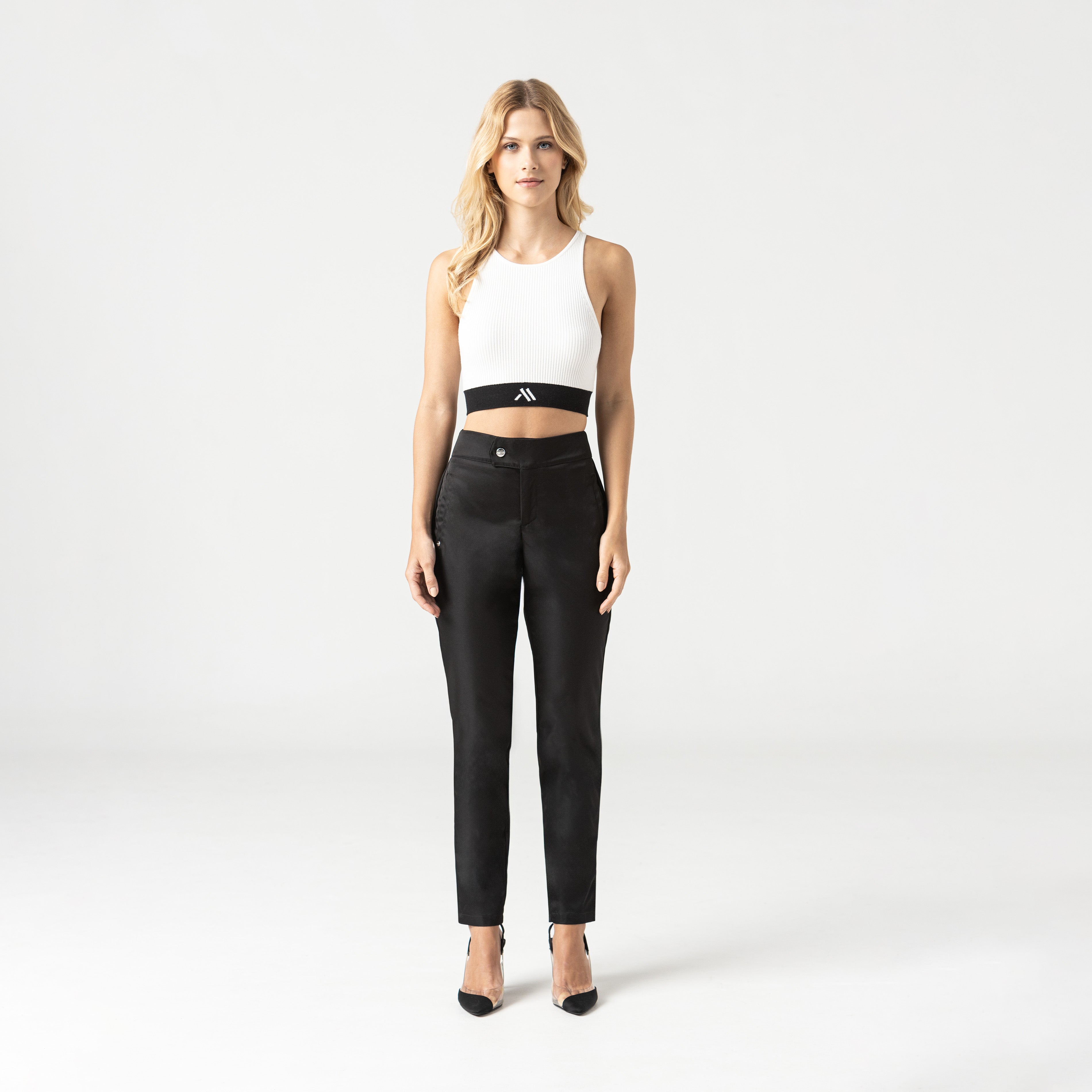 Actualizar disponibilidadPantalón para mujer silueta regular elaborado con la base textil Moretti presenta un corte clásico y cómodo que se ajusta perfectamente al cuerpo ofreciendo un balance ideal entre estilo y confort. Está diseñado con bolsillos en ribete tanto en la parte frontal como en la posterior, lo que le otorga un toque sofisticado y elegante. Los insumos Monastery tienen un baño de plata brillante, brindando durabilidad, resistencia y un acabado de lujo. Este pantalón es perfecto para quienes buscan una prenda versátil, práctica y con un diseño atemporal.