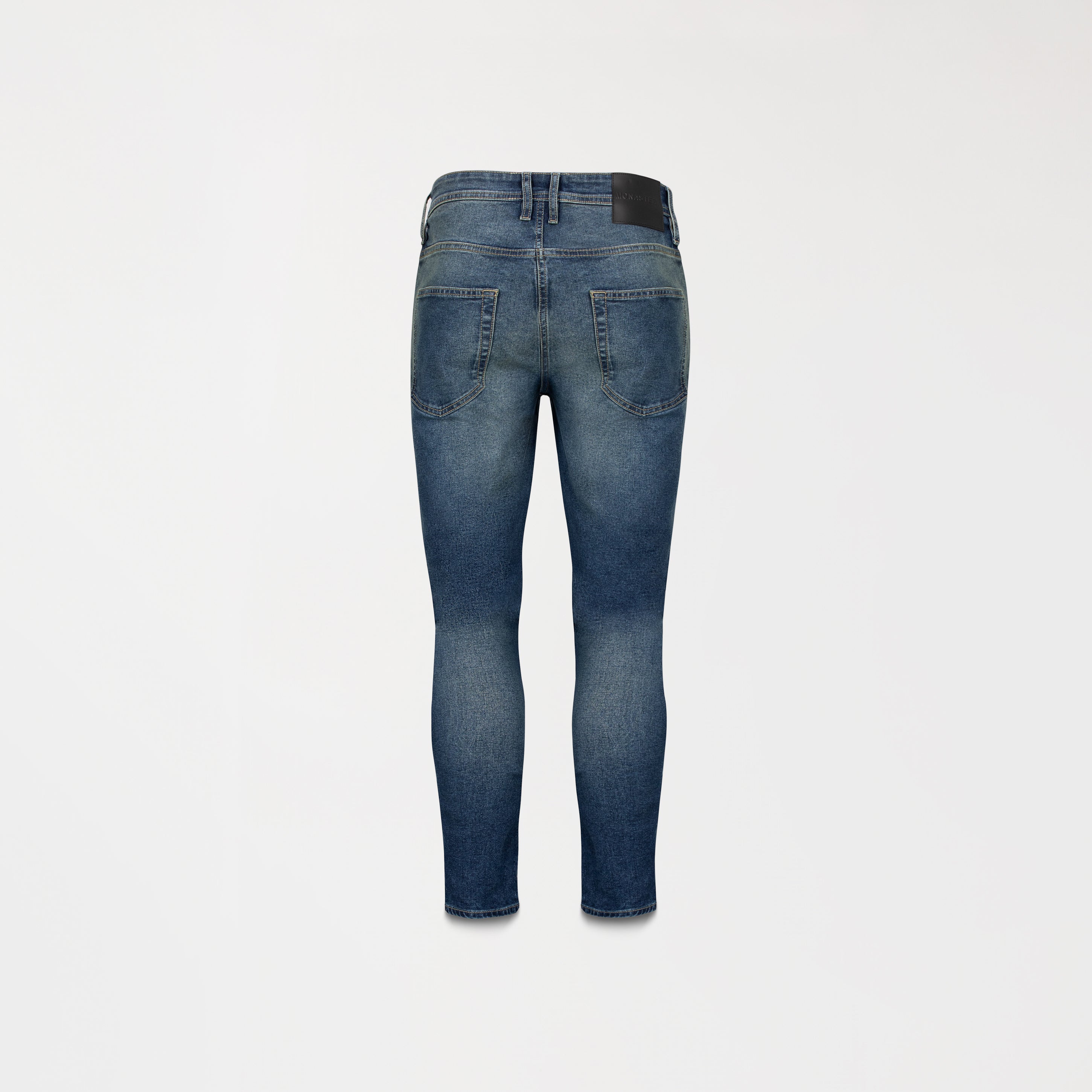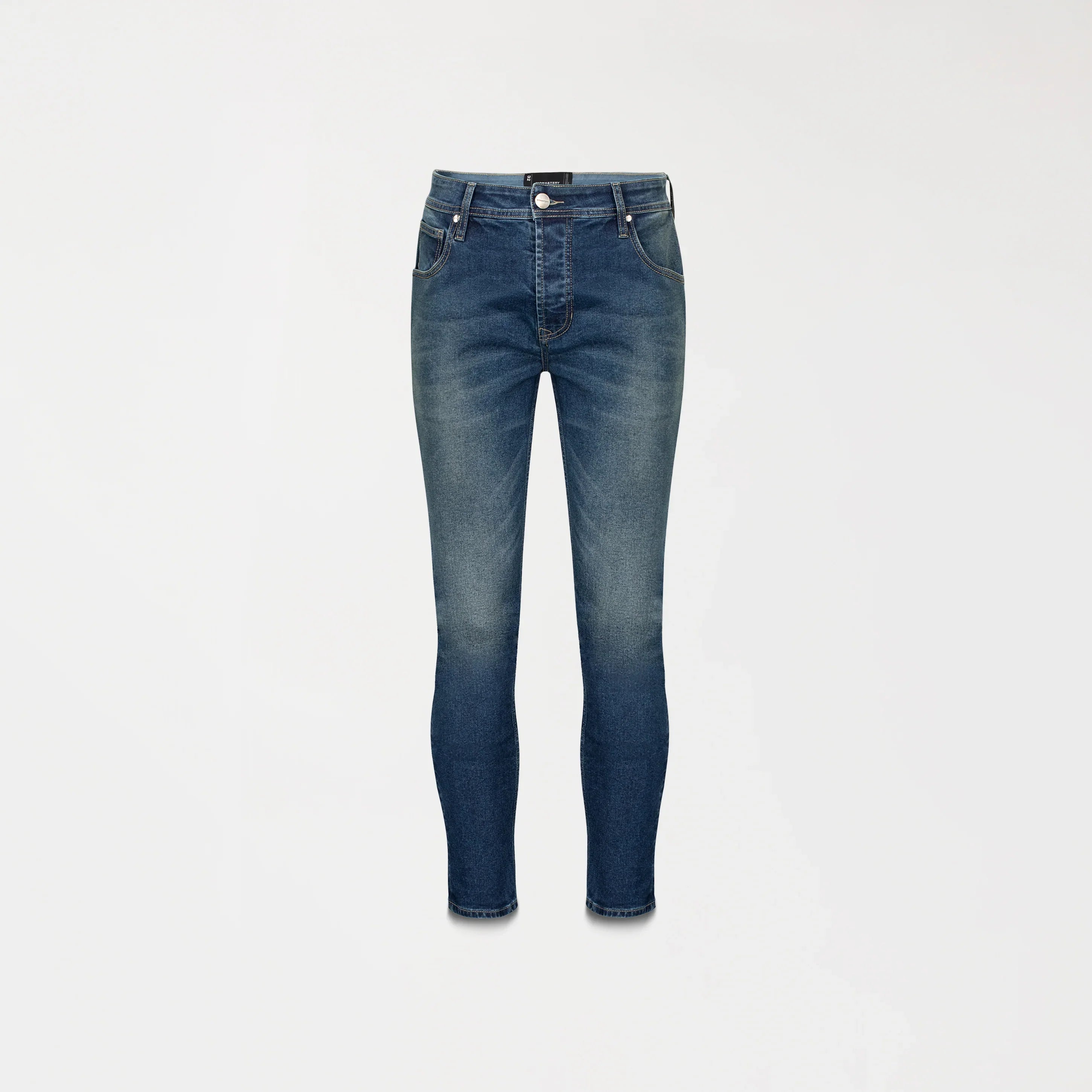 Jean masculino confeccionado en denim azul oscuro de alta calidad, que ofrece estructura, durabilidad y confort. Su silueta slim fit proporciona un ajuste moderno y favorecedor, ideal para un estilo contemporáneo.