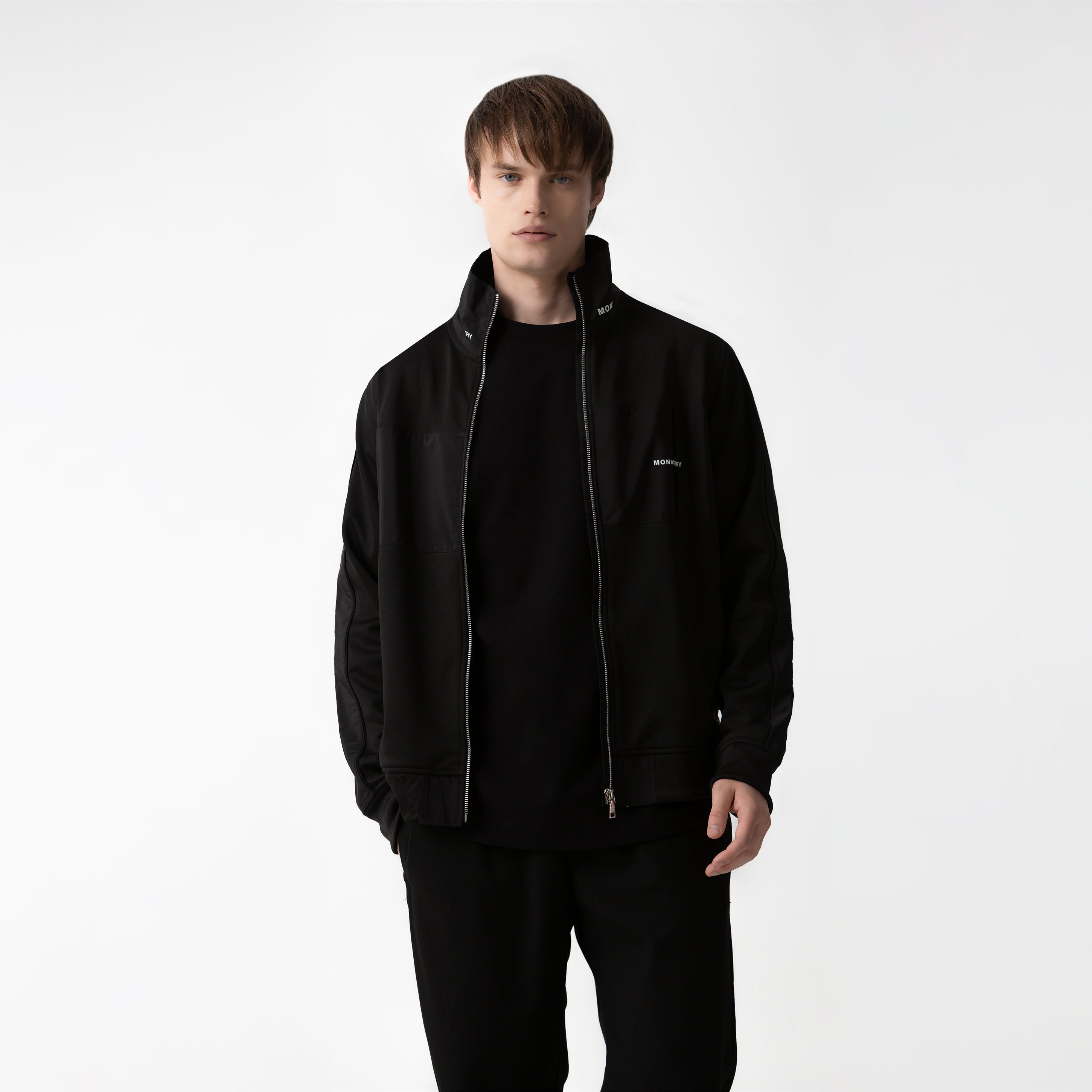 Jacket masculina confeccionada en una exclusiva base textil “doble rib”, desarrollada especialmente para Monastery, que ofrece estructura, confort y un acabado premium.