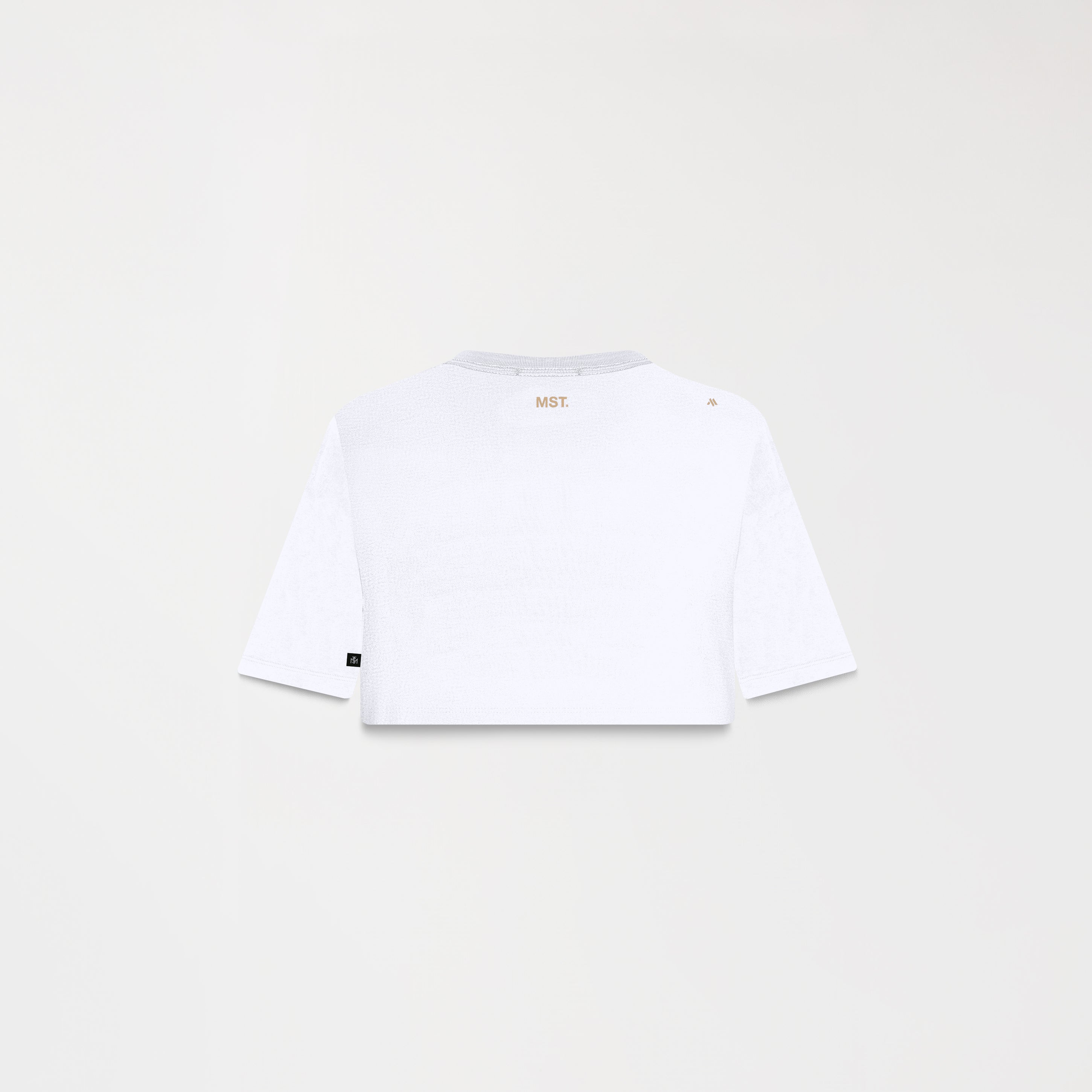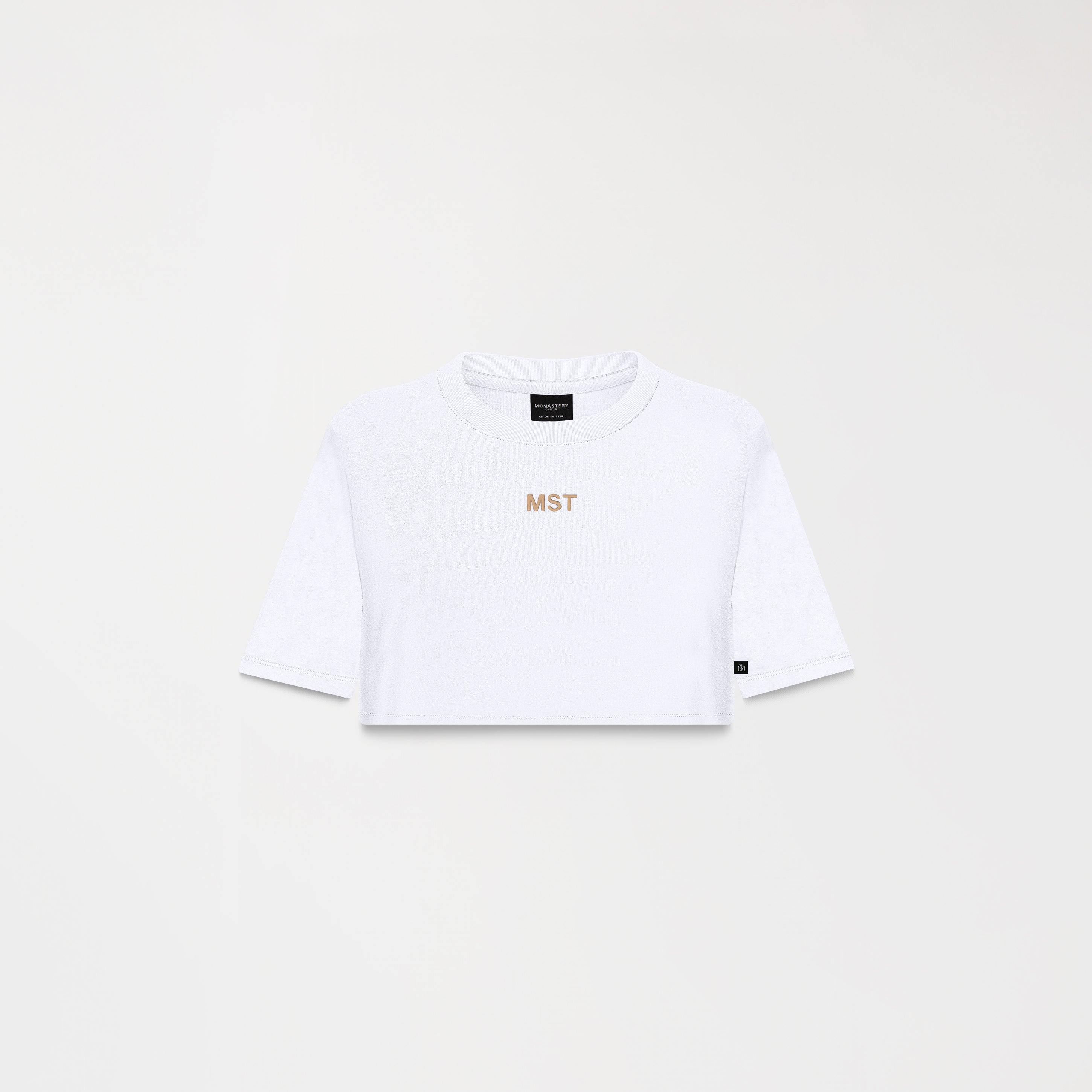 Indira es un crop top femenino confeccionado en algodón 100% exclusivo para Monastery, con una silueta pequeña que resalta la figura. En el frente, el logo MST aparece en técnica de bordado 3D en tono contraste, aportando relieve y fuerza visual. La espalda incorpora los logos insignia en estampado plano, reforzando la identidad gráfica de la marca. Una prenda versátil que combina técnicas de alto nivel con un diseño pensado para integrarse con facilidad en múltiples estilos.