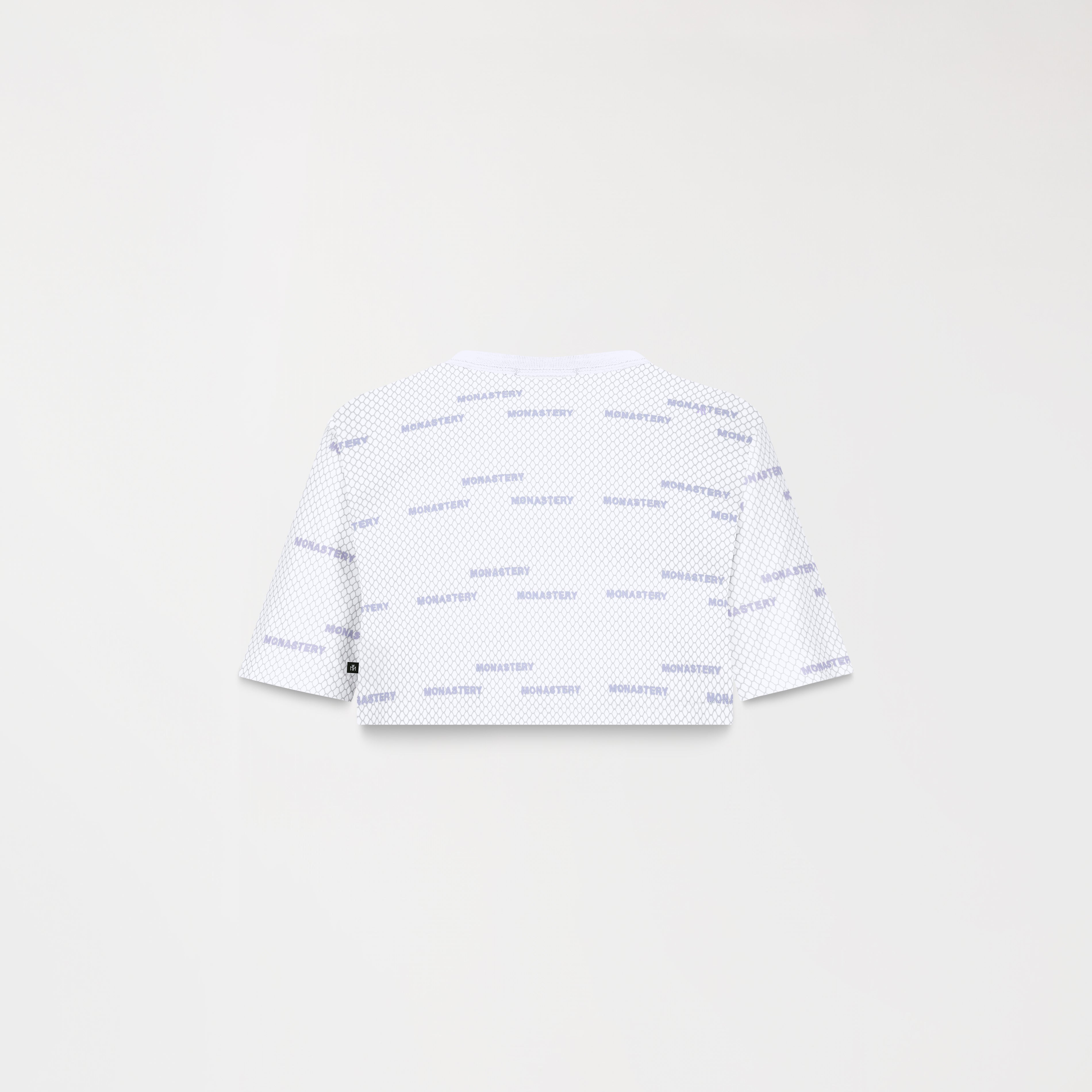 Actualizar disponibilidadCrop top para mujer en algodón peruano exclusivo para Monastery, elaborada en silueta pequeña, Este crop top cuenta con un fondeo estampado plano en toda la prenda acompañada de un repite de nuestro iconico logo Monastery y en su fondo un arte repetido de un efecto en maya el cual genera distincion y dinamismo perfecto para tu vestuario y estilo.