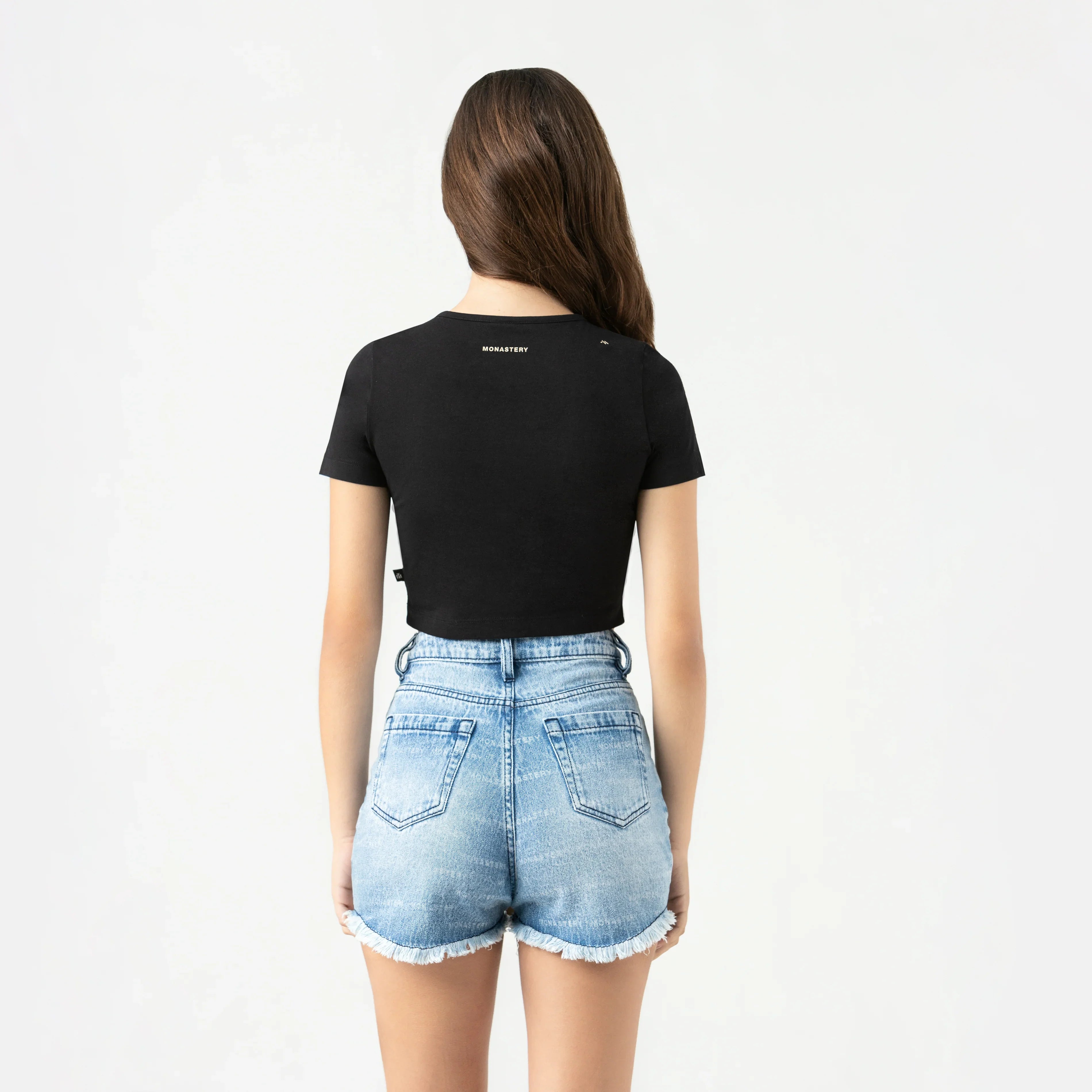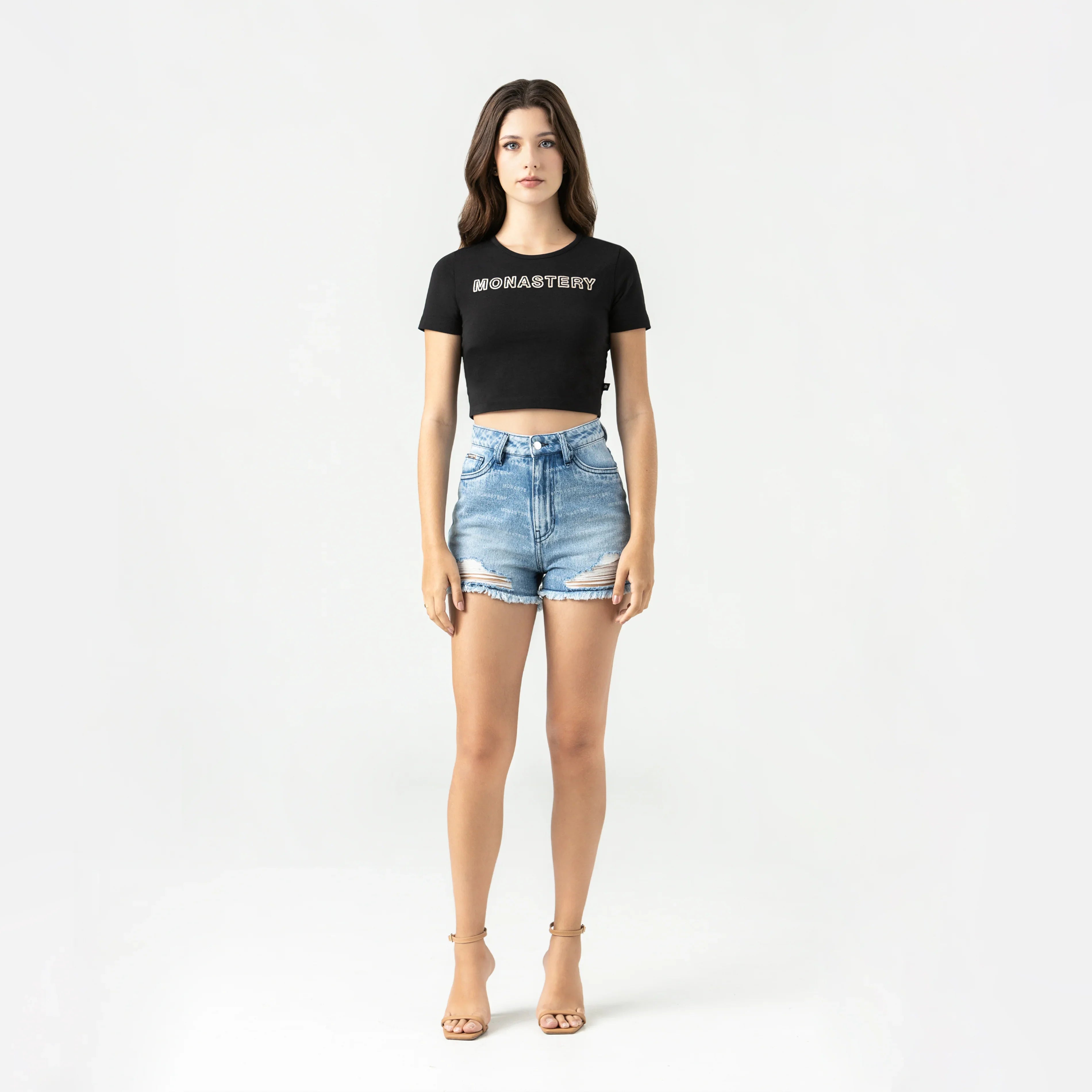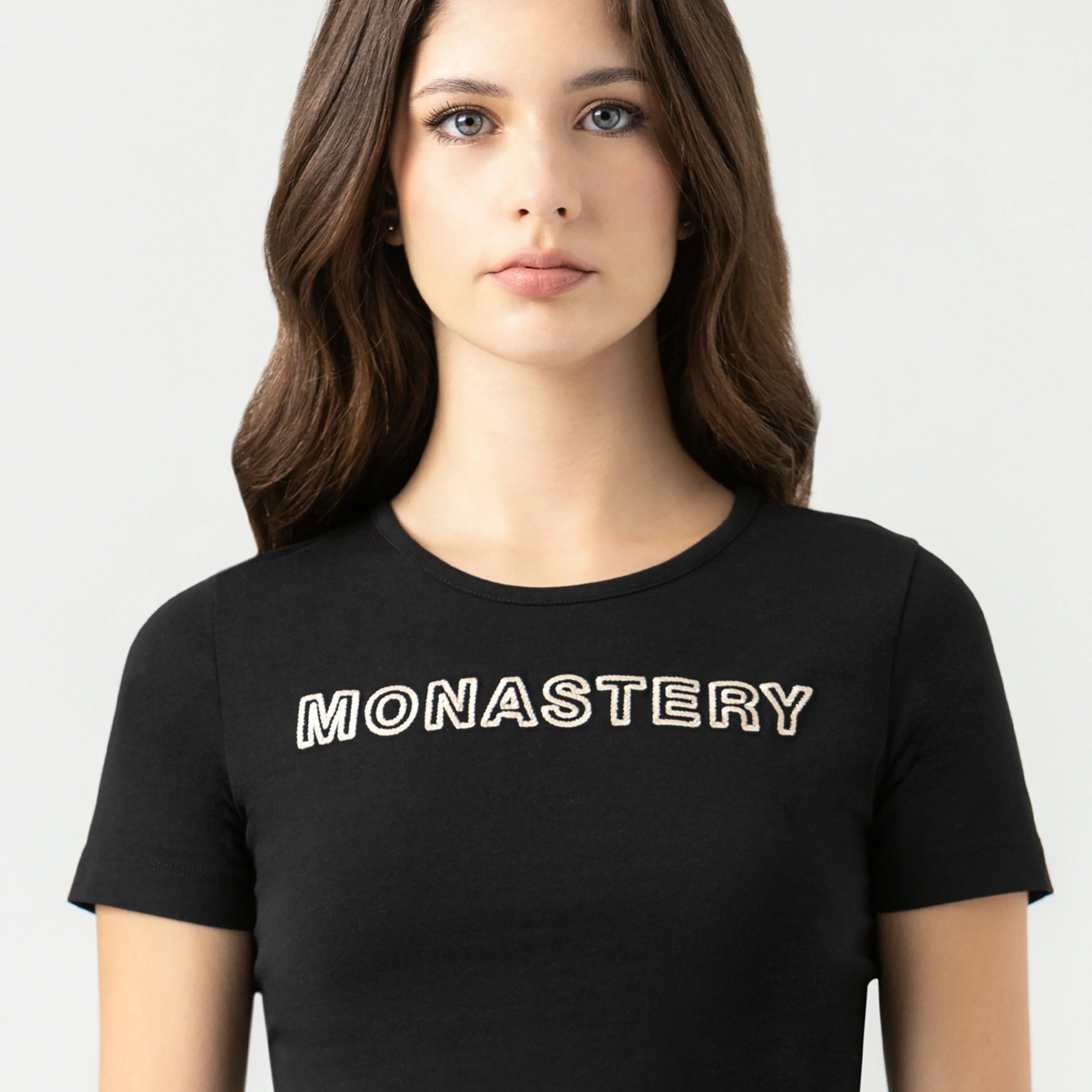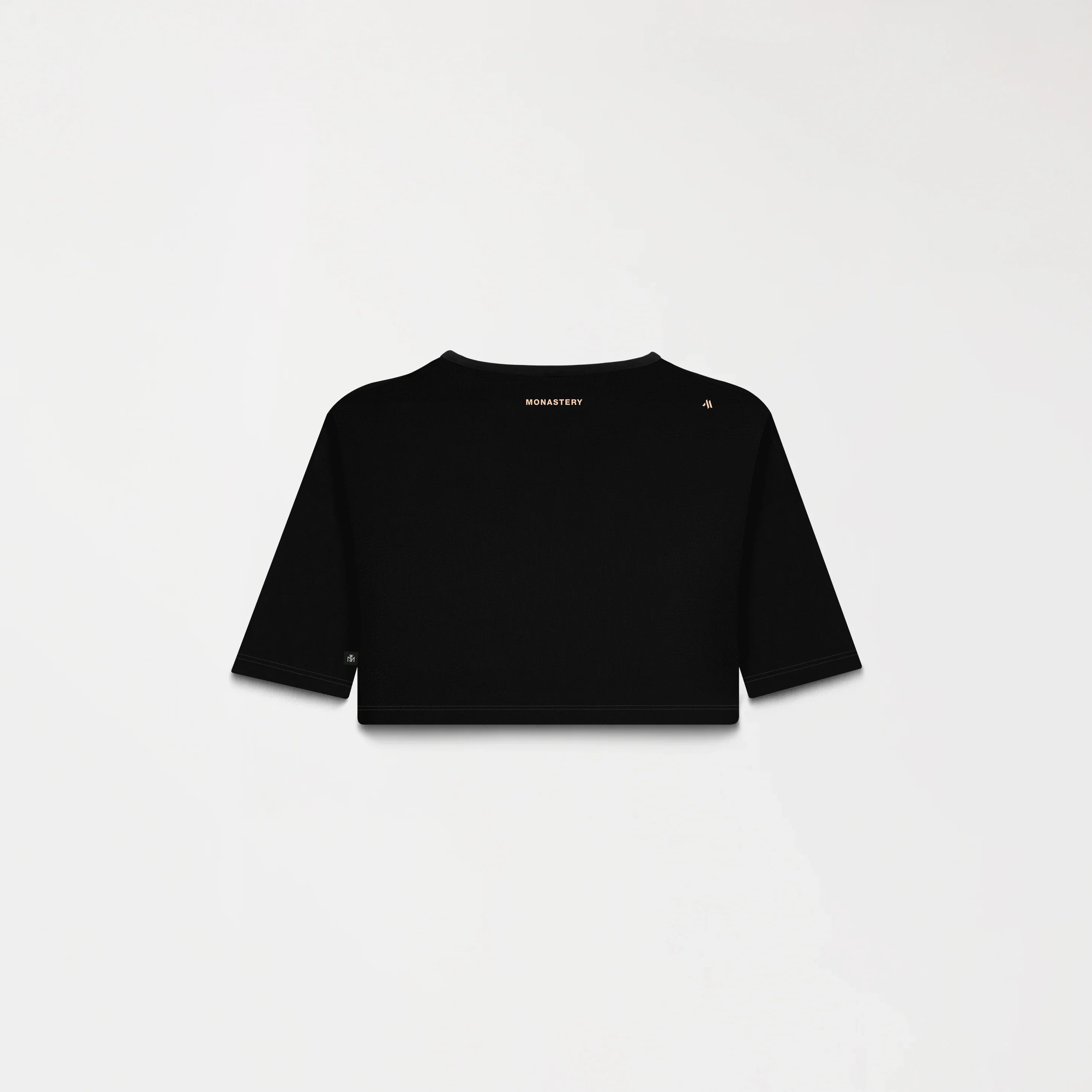 Kaia es un crop top femenino de silueta corta con cuello en sesgo, diseñado para realzar la figura. Confeccionado en una base textil fresca y ajustada, combina comodidad con sofisticación. El frente destaca con el logo Monastery en técnica de bordado con efecto cuerda, mientras que la espalda incorpora los logos insignia en estampado plano, reforzando su carácter distintivo. Una prenda versátil que aporta identidad y estilo en cada ocasión.