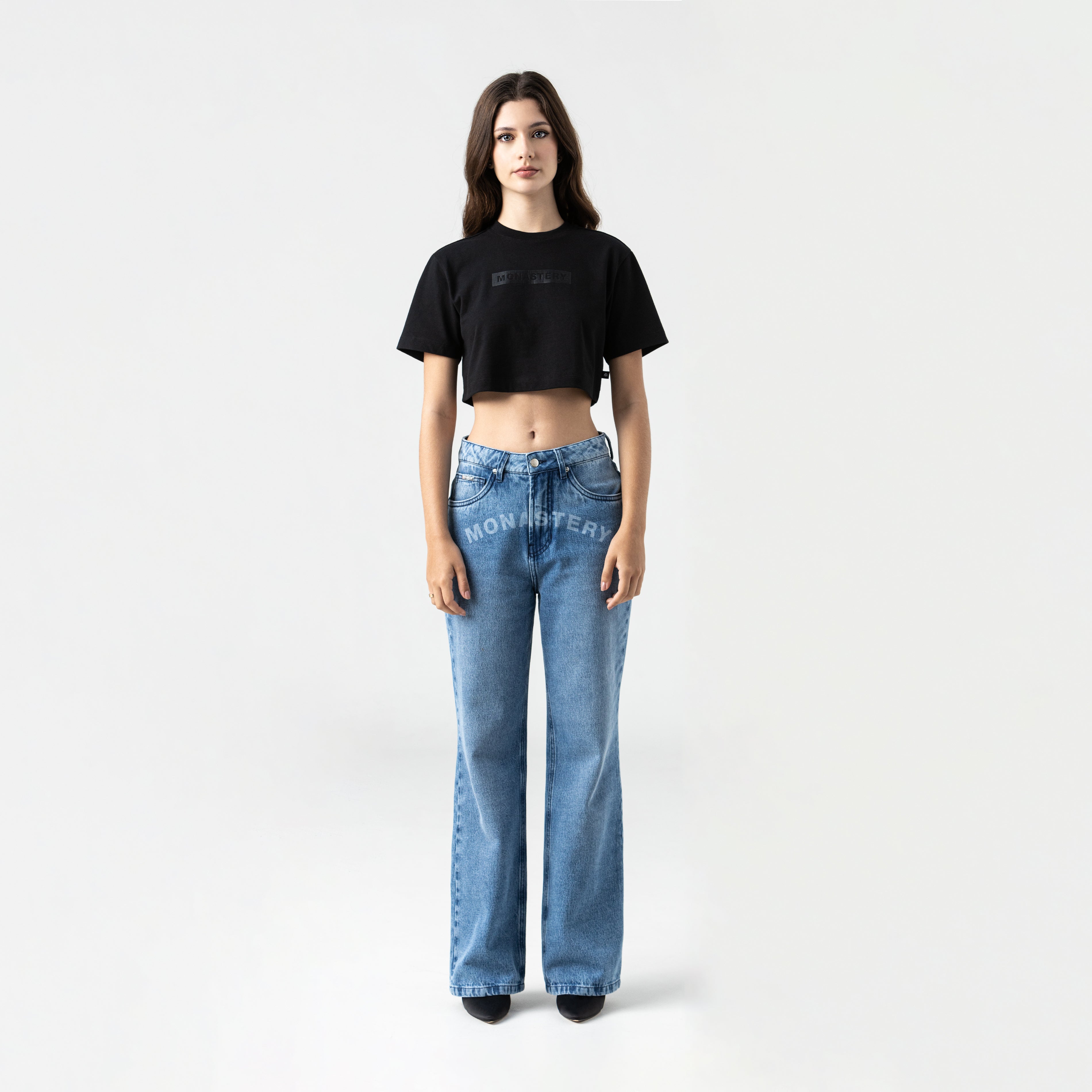 El crop top femenino Leire está confeccionado en algodón 100% exclusivo para Monastery, con una silueta pequeña que realza la figura y ofrece un ajuste cómodo y favorecedor. En el frente, destaca el logo Monastery aplicado en técnica estampado de alta densidad combinado con foil negro imitación lentejuelas, logrando un acabado vibrante y original. En la espalda, los logos insignia se presentan en estampado plano, reforzando la identidad de la marca. Perfecta para quienes buscan originalidad y calidad en su vestuario diario.