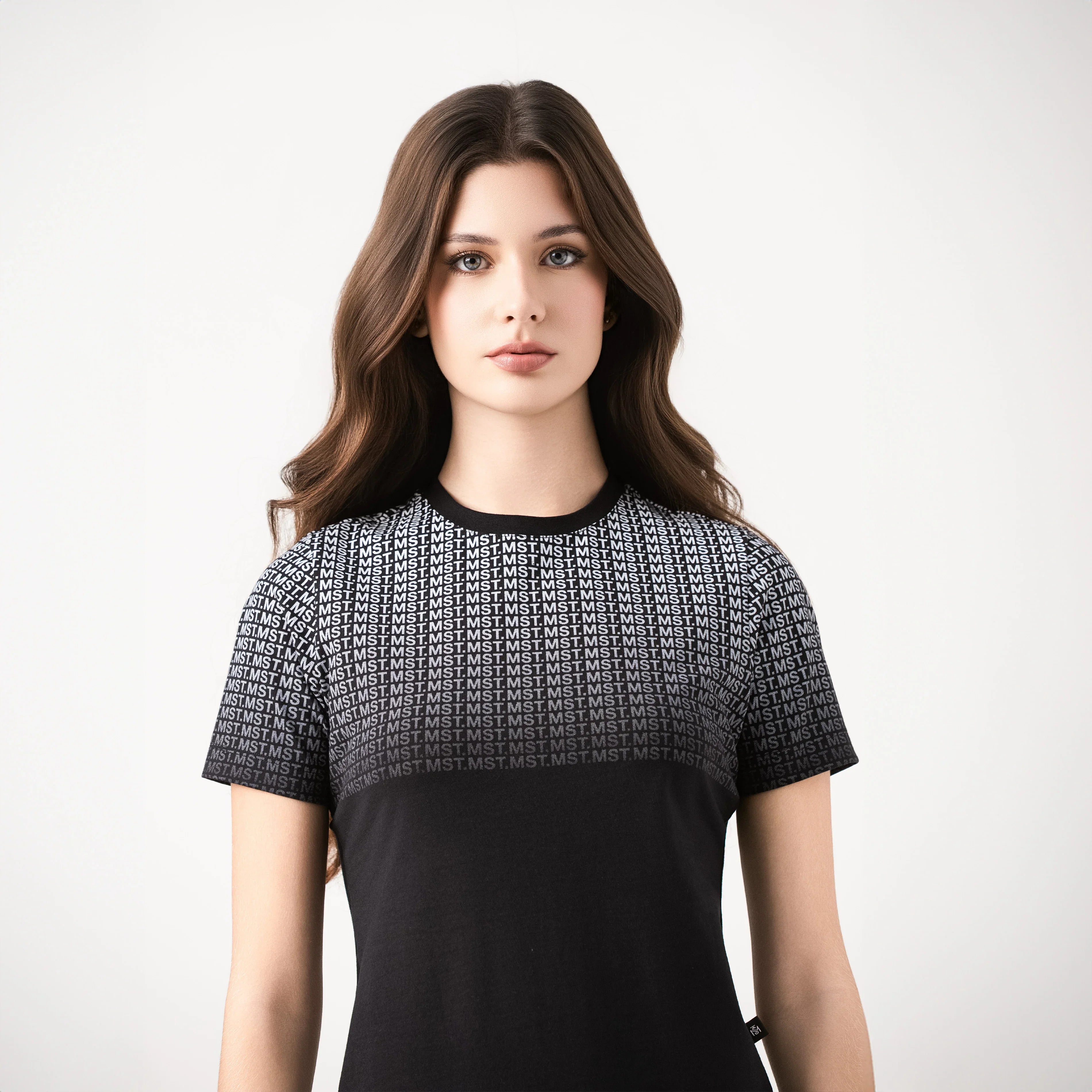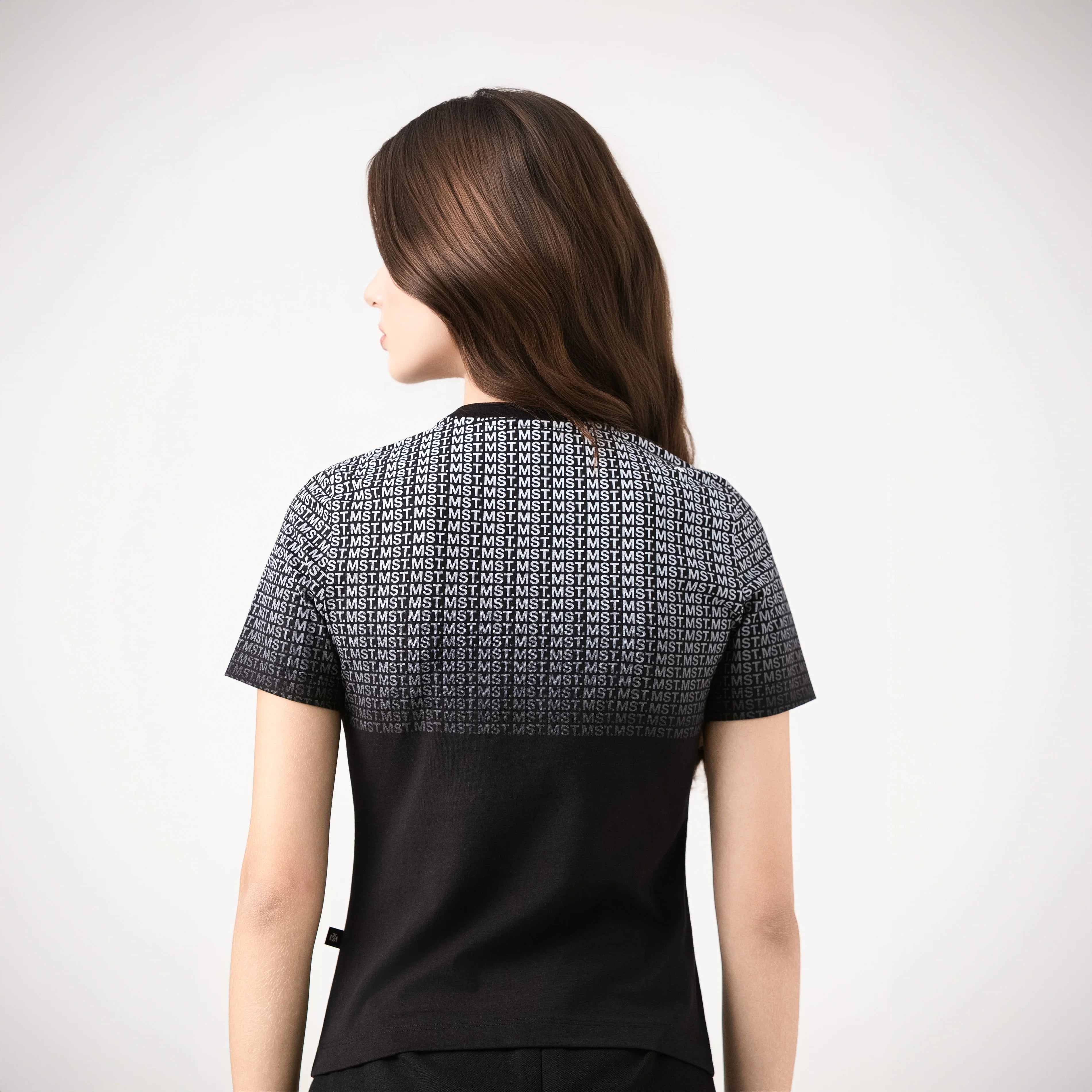 T-shirt femenina elaborada en silueta pequeña pensada para resaltar la figura femenina, atravez de su base
