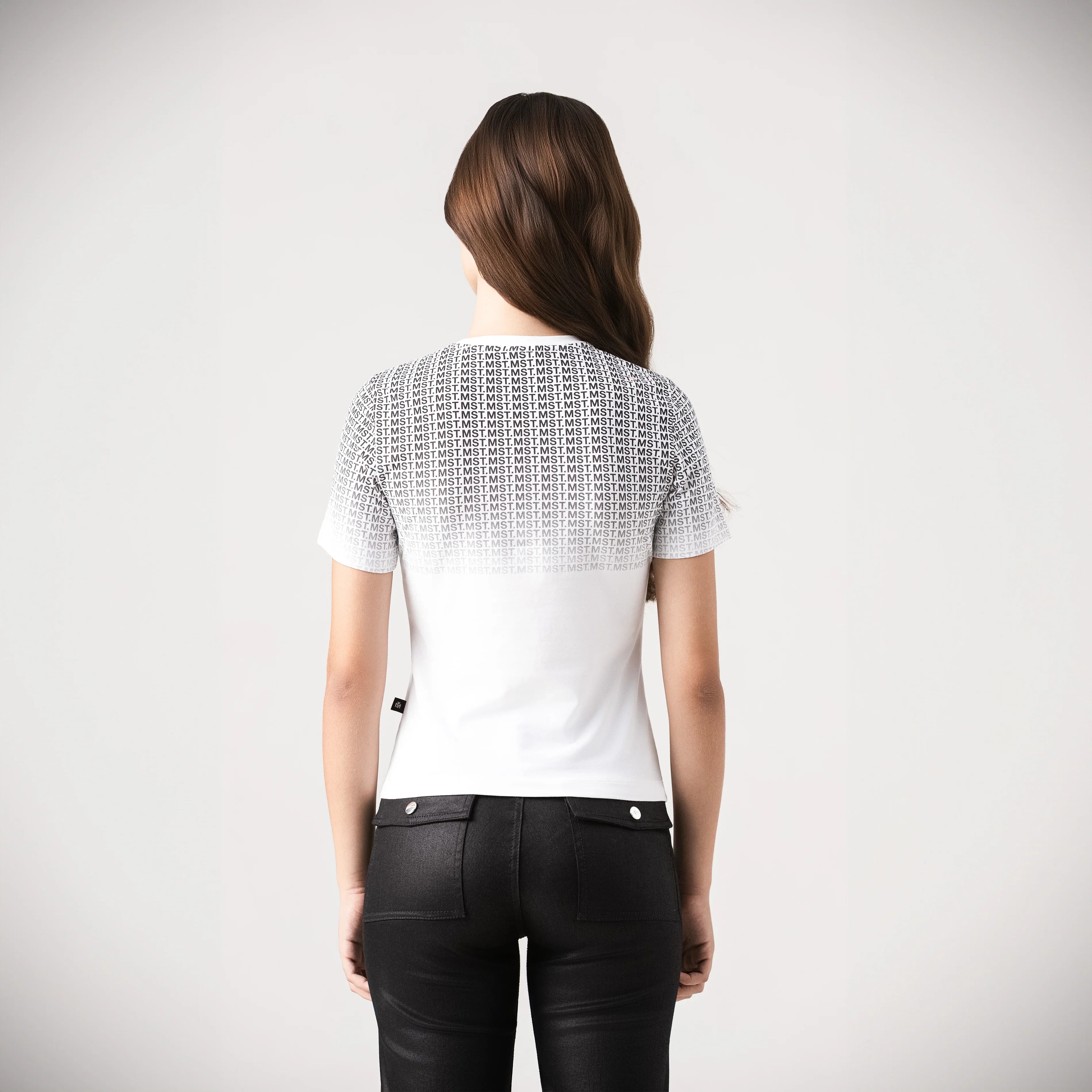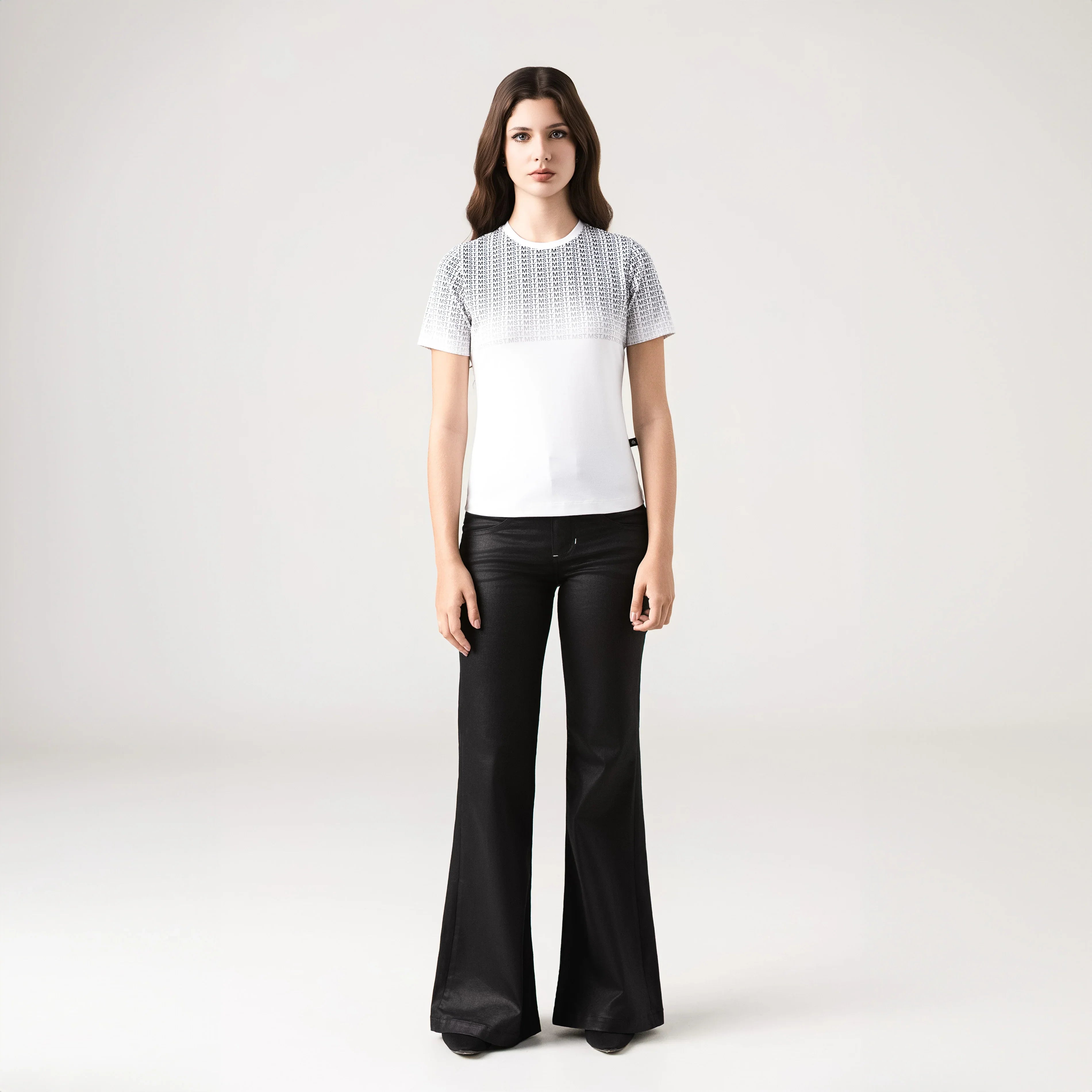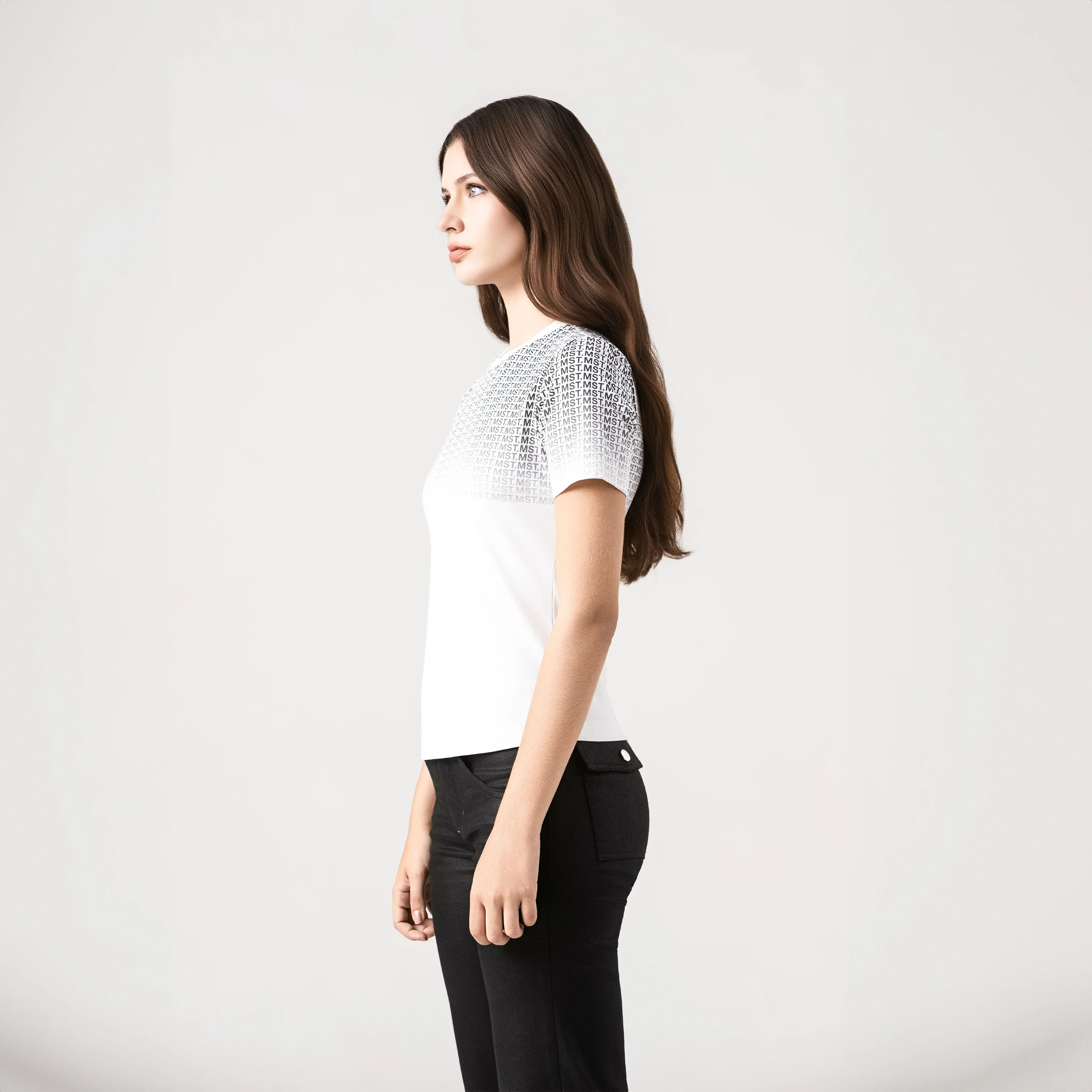 T-shirt femenina elaborada en silueta pequeña pensada para resaltar la figura femenina, atravez de su base