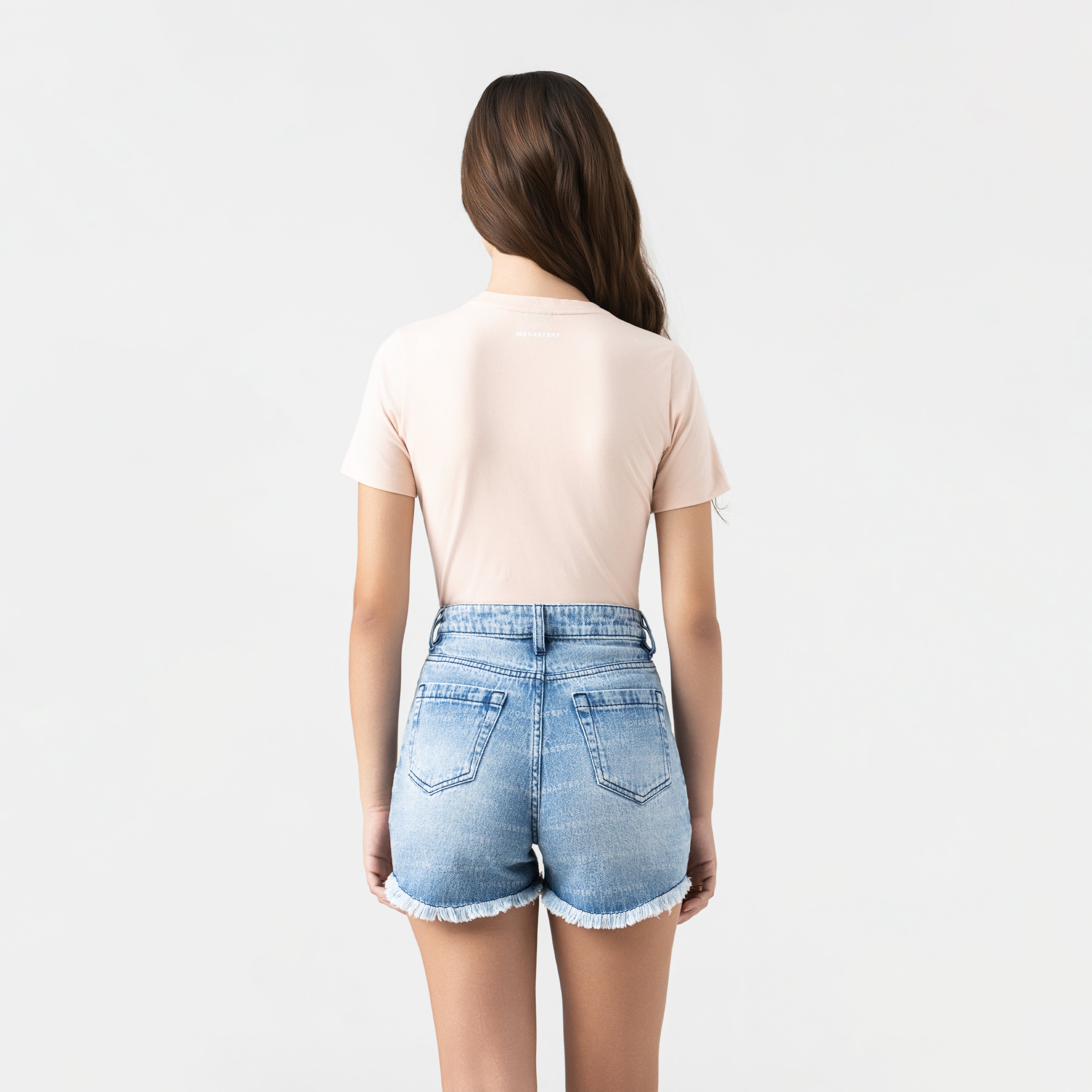 T-shirt femenina elaborada en silueta pequeña pensada para resaltar la figura femenina, atravez de su base