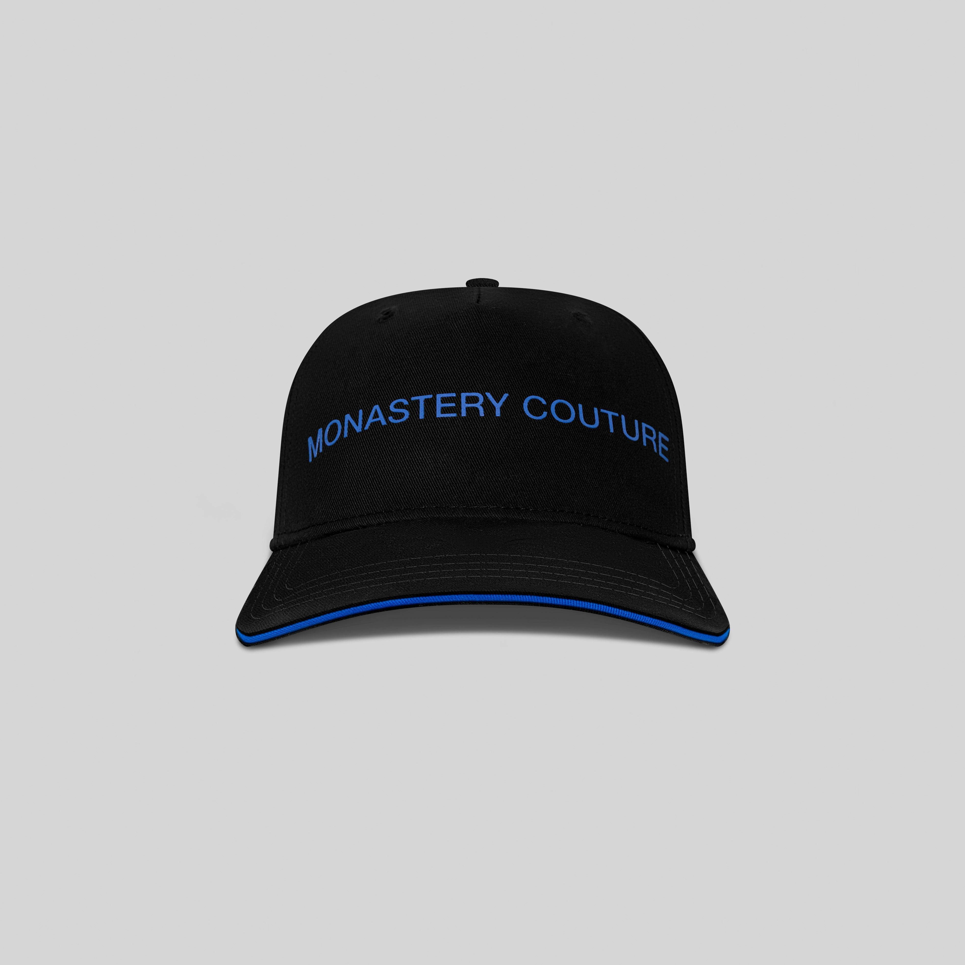 Actualizar disponibilidadGorra Malatyo Monastery unisex, elaborada en algodón twill con sistema de cierre ajustable con broche metálico en color azul, enfrente texto monastery couture elaborado en técnica de alta definición.