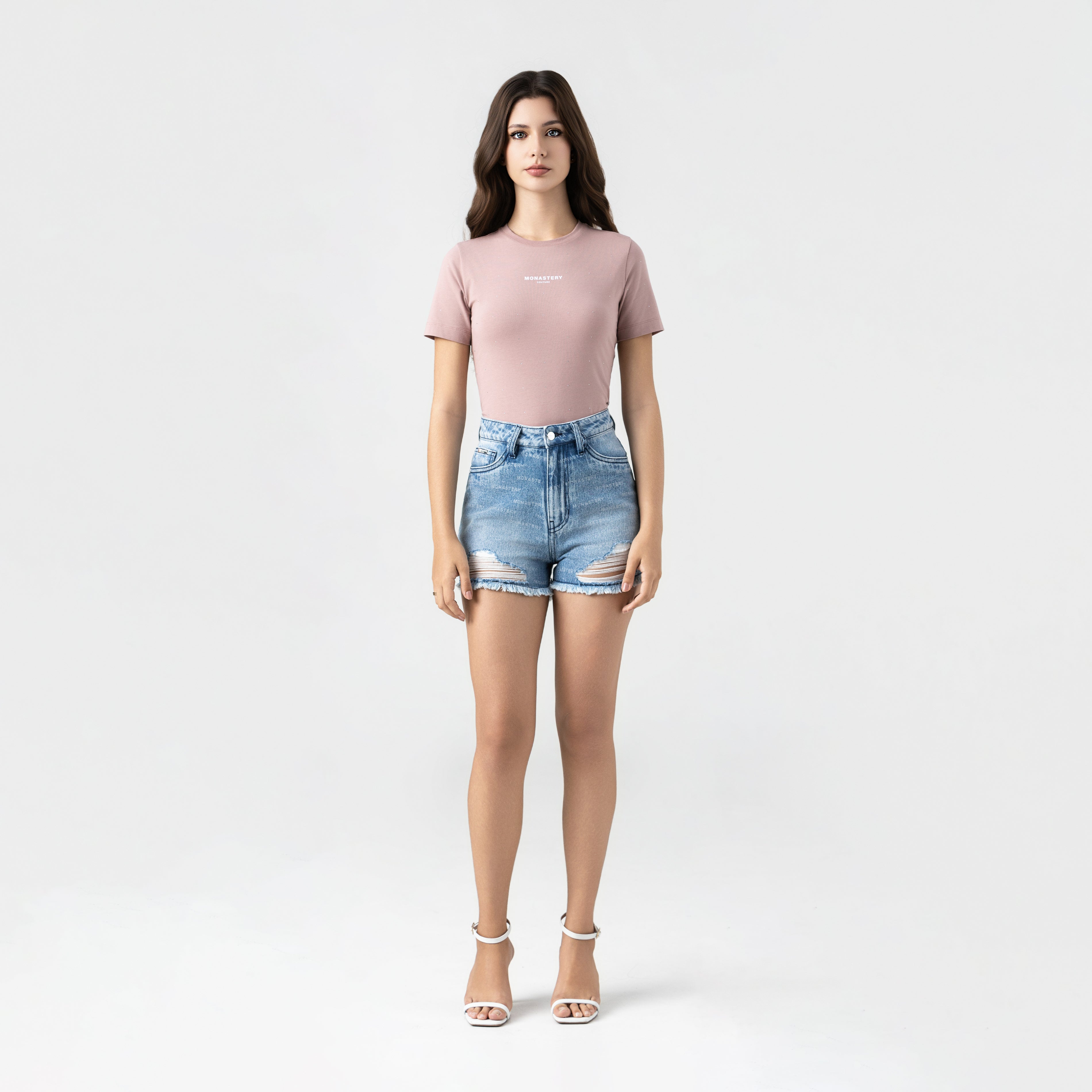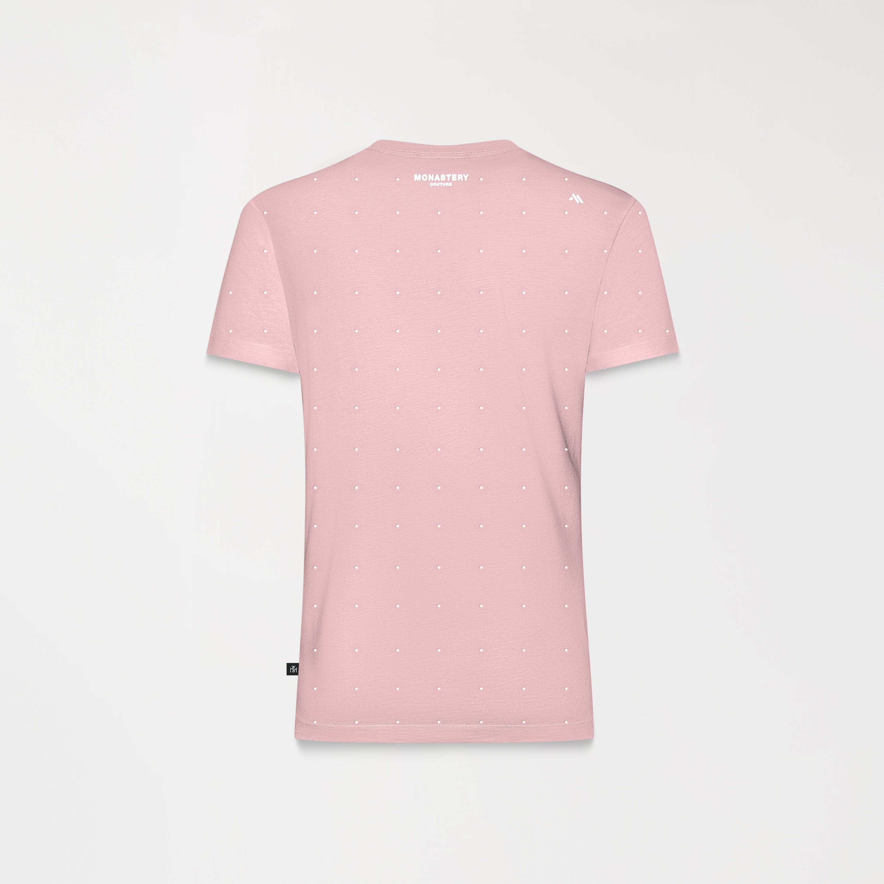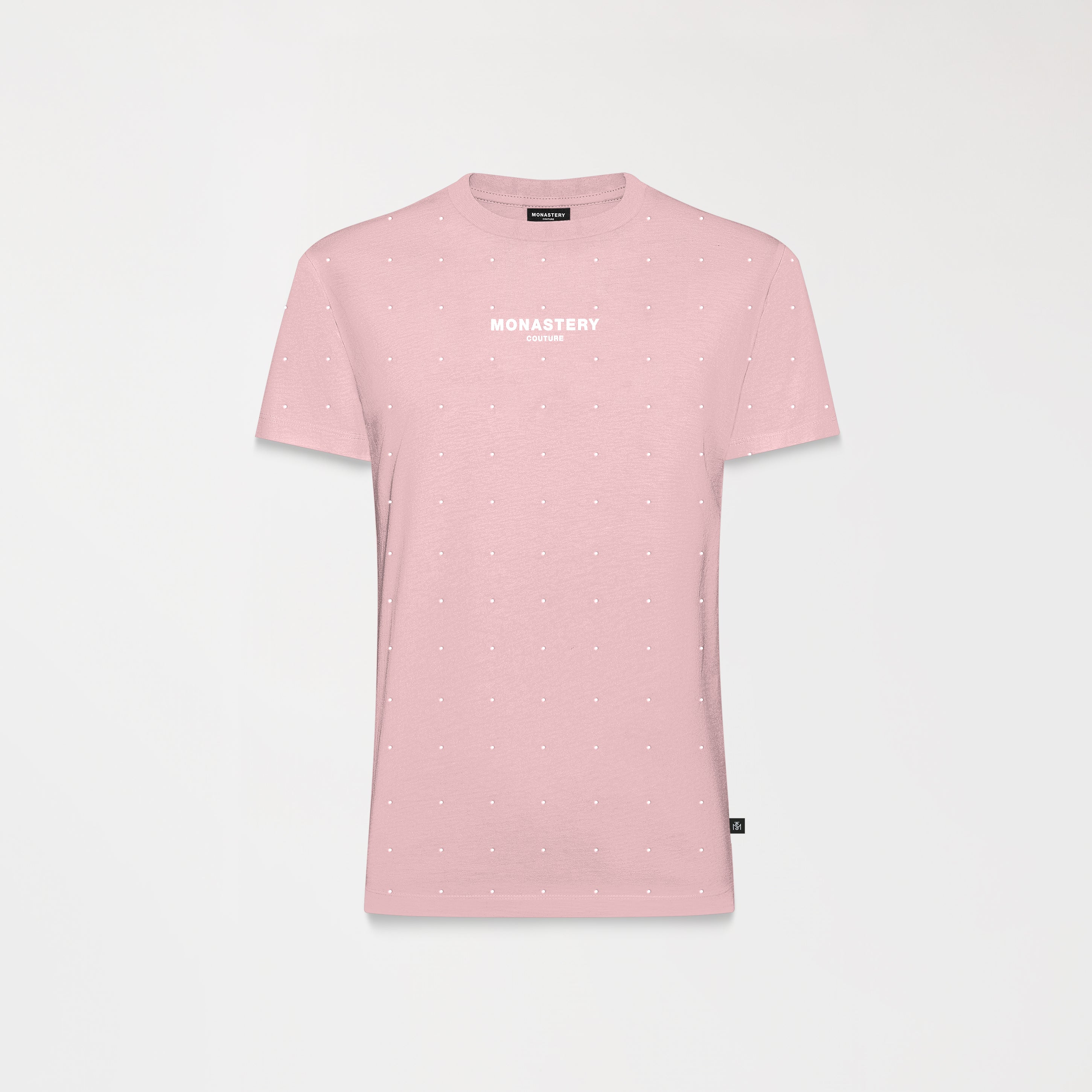 T-shirt femenina elaborada en silueta pequeña pensada para resaltar la figura femenina, atravez de su base textil, fresca y ajustada. Qylla es una referencia intervenida con aplicacion de cristales ubicados de forma continua en toda la prenda, dispuestos con presicion para generar un efecto dinamico, contiene el logo Monastery couture en centro frente en tecnica transfer el cual refuerza el contraste visual sin restarle protagonismo al diseño, la parte posterior cuenta con artes insignia en estampado plano ideal para destacar desde la elegancia.