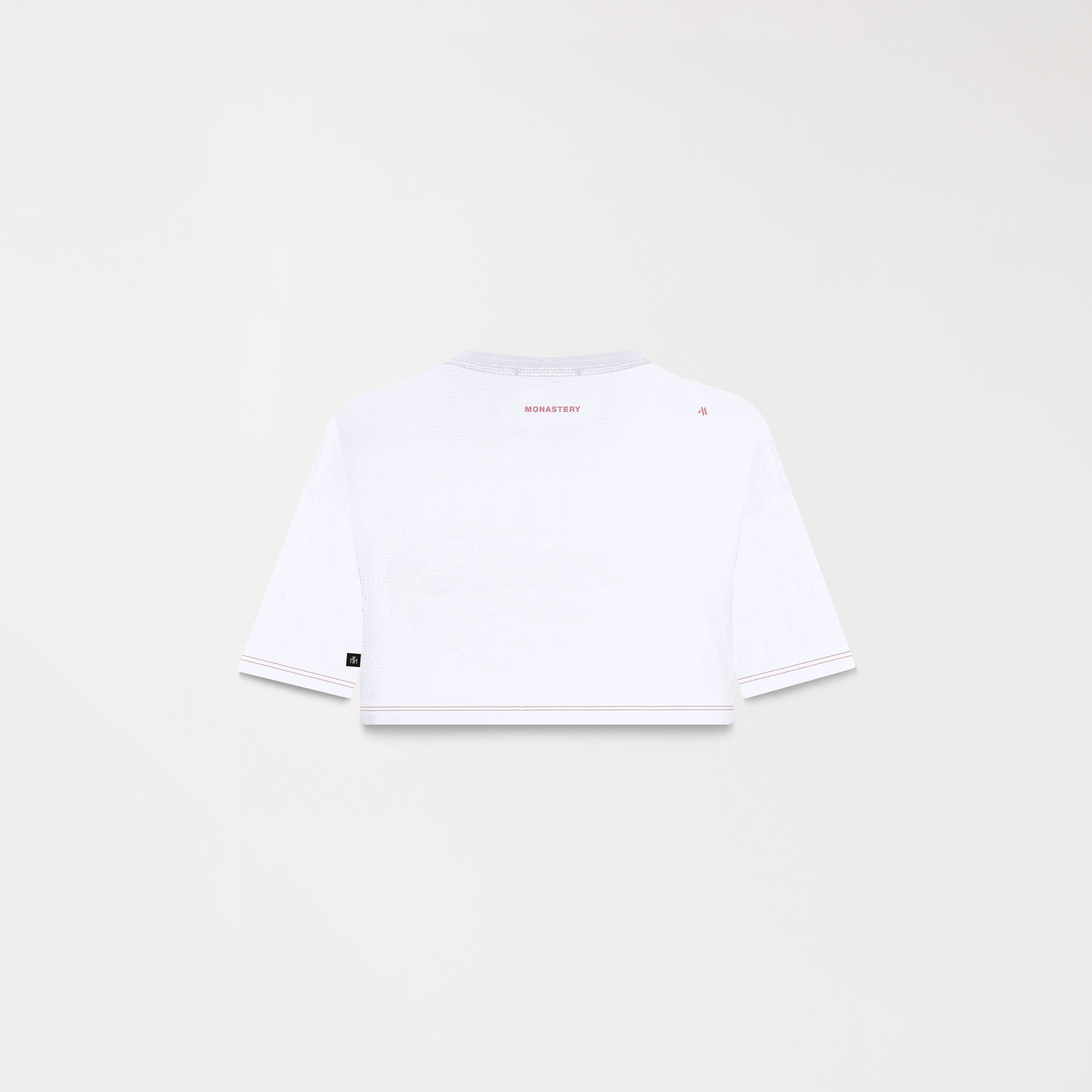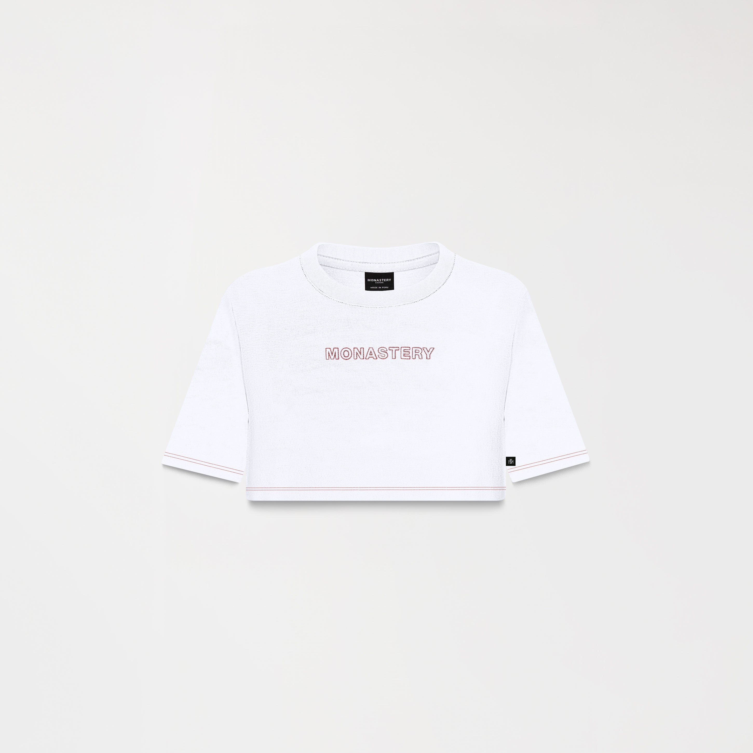 El crop top Roisin combina sofisticación y detalle artesanal en una silueta pequeña confeccionada en algodón 100% exclusivo para Monastery. En el frente, el logo Monastery en bordado 3D se complementa con pespuntes en contraste en ruedo y mangas, aportando un acabado definido y elegante. La espalda presenta los logos insignia en estampado plano, reforzando la identidad de la marca. Una pieza versátil y refinada, ideal para quienes buscan elevar un look casual con un toque distintivo.
