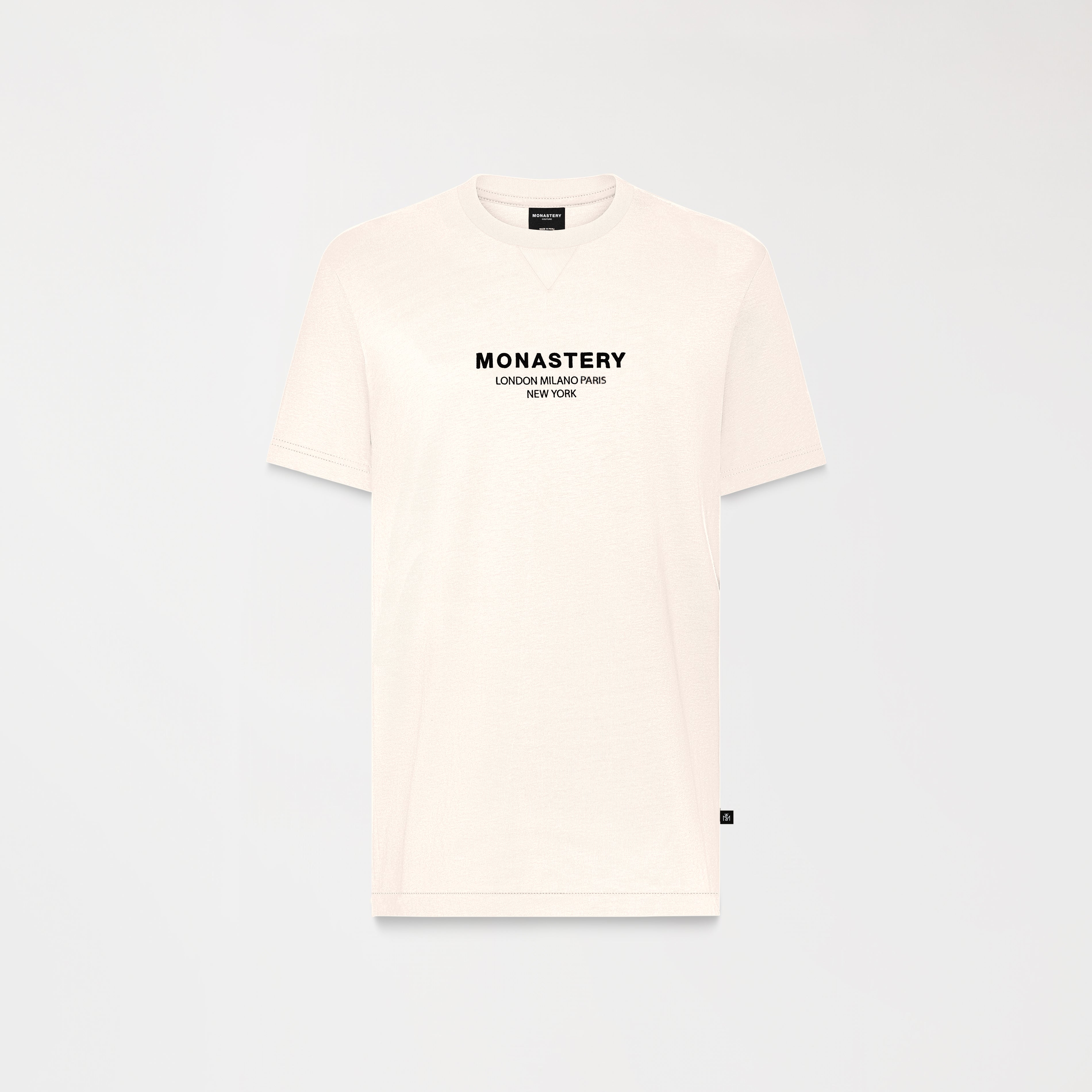 Actualizar disponibilidadSharam es un t-shirt masculina, elaborada en 100% algodón Peruano exclusivo para Monastery. En frente, esta prenda cuenta con nuestro icónico logo Monastery acompañado de las ciudades referentes de nuestro ADN bajo la técnica bordado 3D y plano. Sharam es una prenda con detalles renovados, como su cuello triangulo en rib 2,5cm, convirtiéndose en un artículo infaltable de tu vestuario.