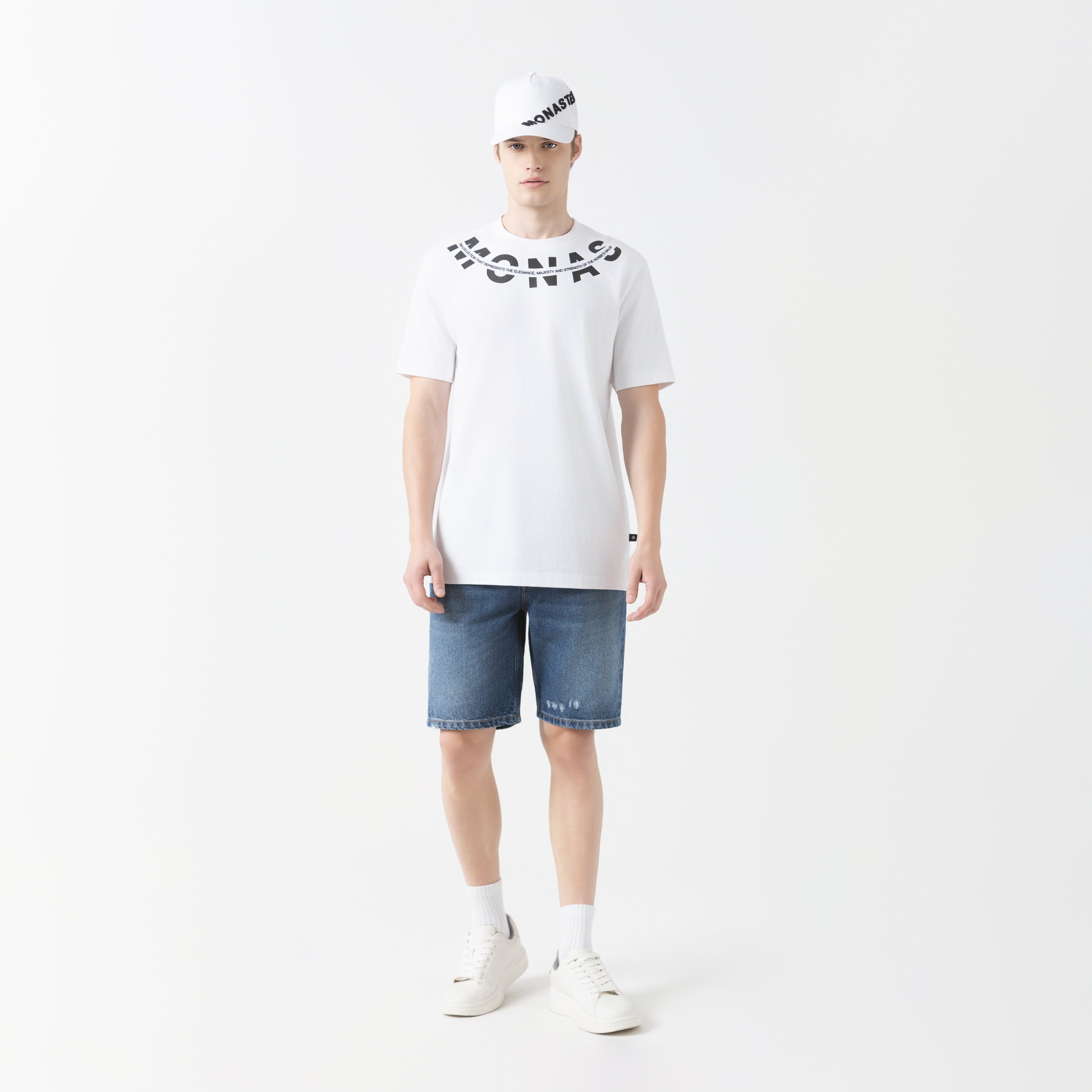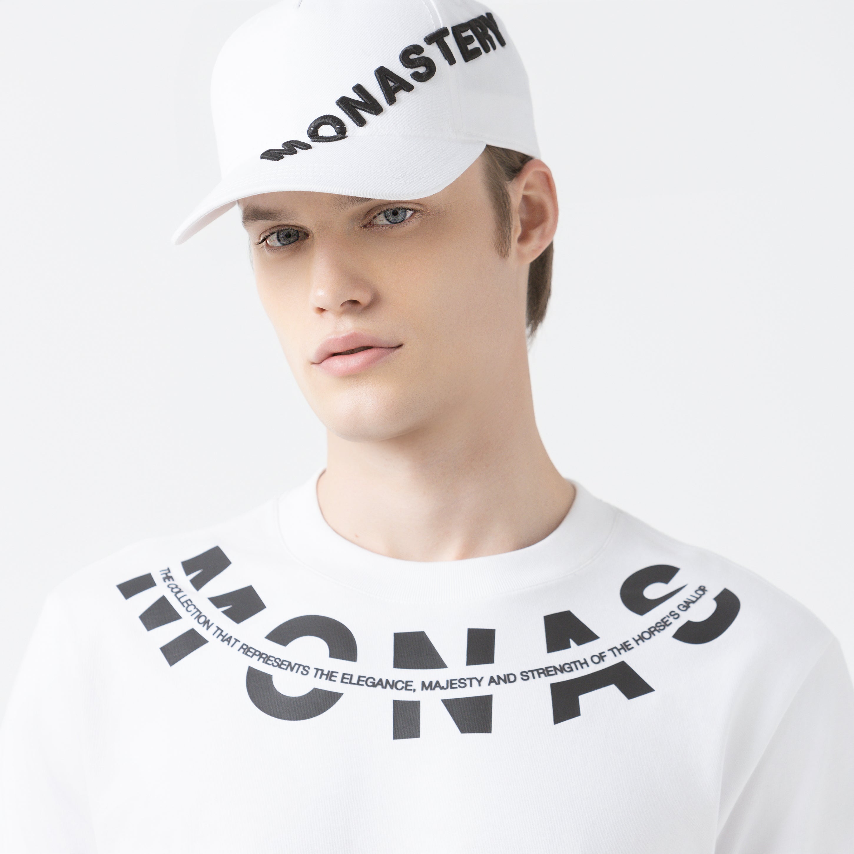 Utah es una T-shirt masculina confeccionada en 100% algodón ultra siliconado de alta calidad, que ofrece una textura suave y un acabado refinado. En el frente y la parte posterior, los artes se aplican en estampado plano combinando transfer mate para un efecto sin brillo y alta densidad, que aporta volumen y relieve táctil. El diseño presenta la palabra Monastery distribuida estratégicamente entre ambas caras, generando una continuidad gráfica envolvente que refuerza la identidad visual de la marca.