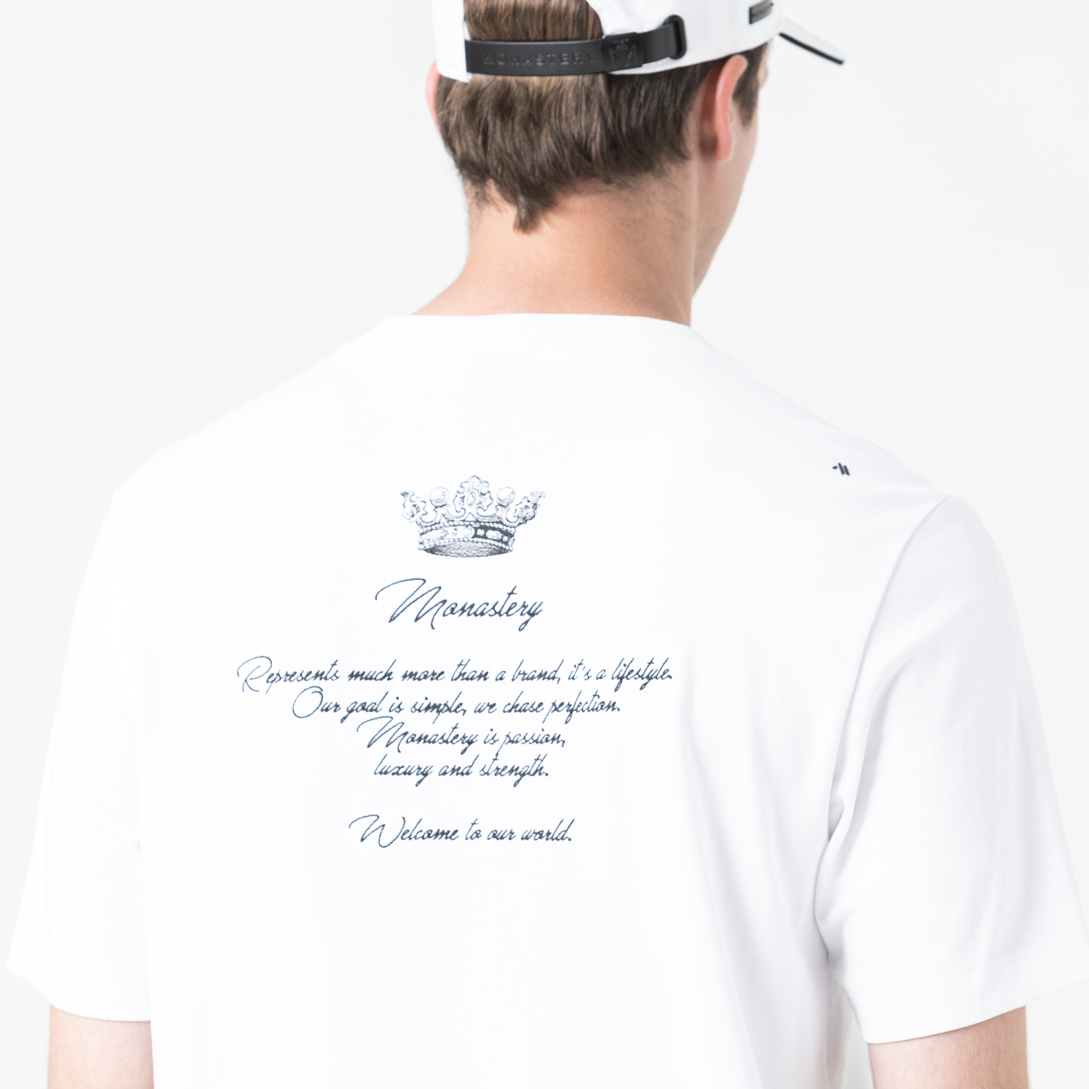 Actualizar disponibilidadCamiseta para hombre en 100% algodón exclusivo para Monastery, elaborada en silueta regular con cuello de 2,5cm, presenta arte corona con logo Monastery en punto corazón bajo técnica de bordado plano y arte Monastery The king en espalda en técnica de bordado plano y alta densidad. Warsel es una prenda con un arte icónico renovado, haciendo este articulo fácilmente reconocible, muy versátil para combinar con tu vestuario.