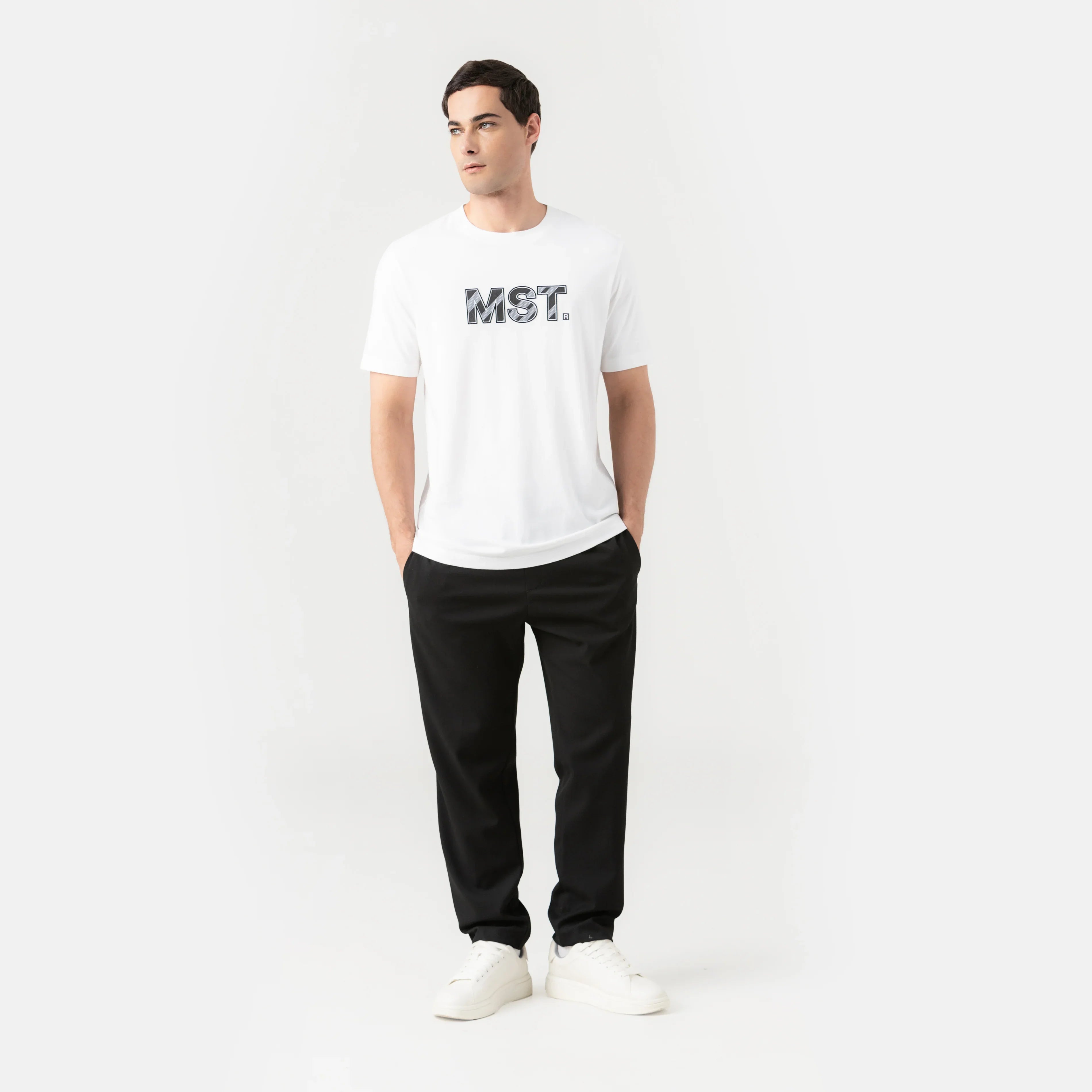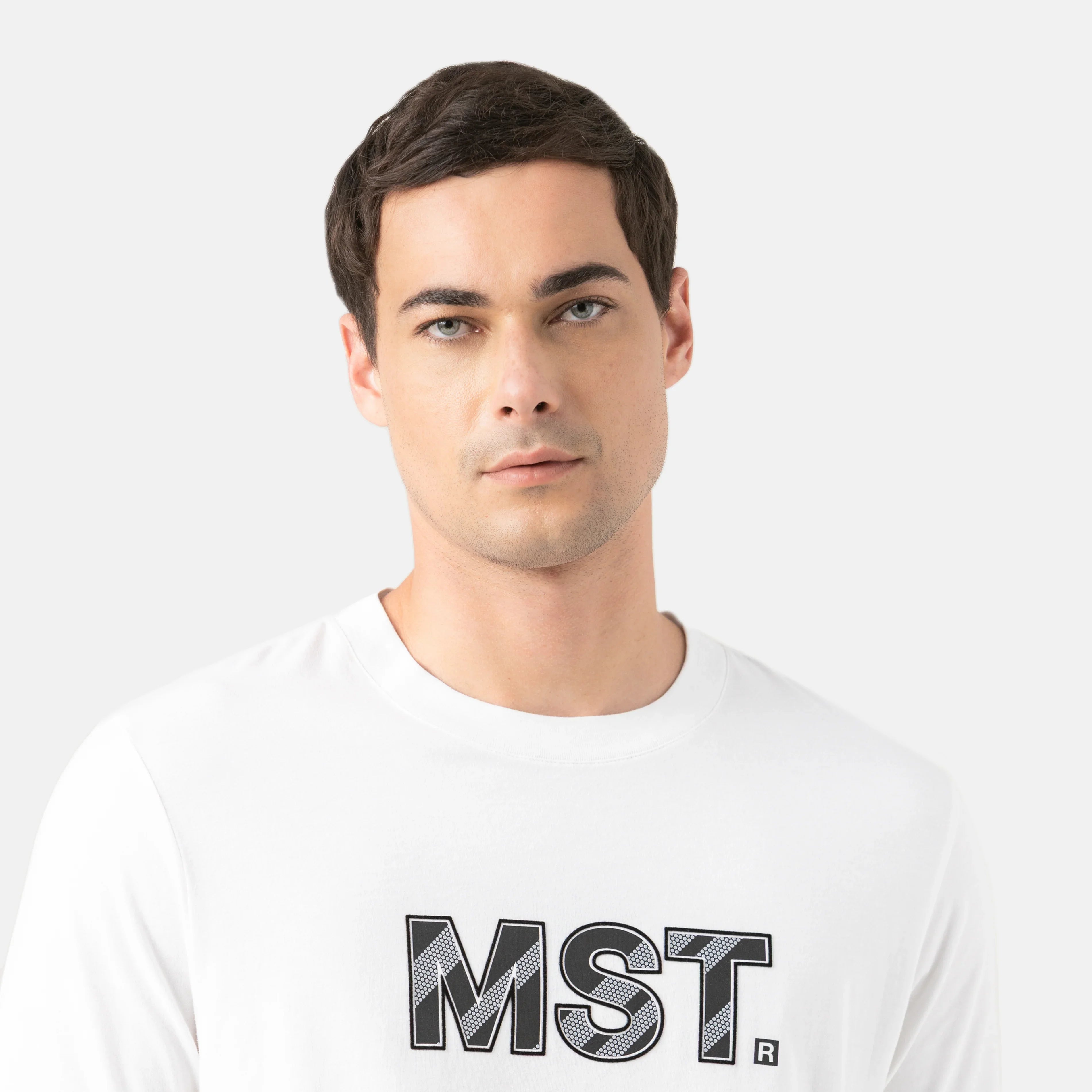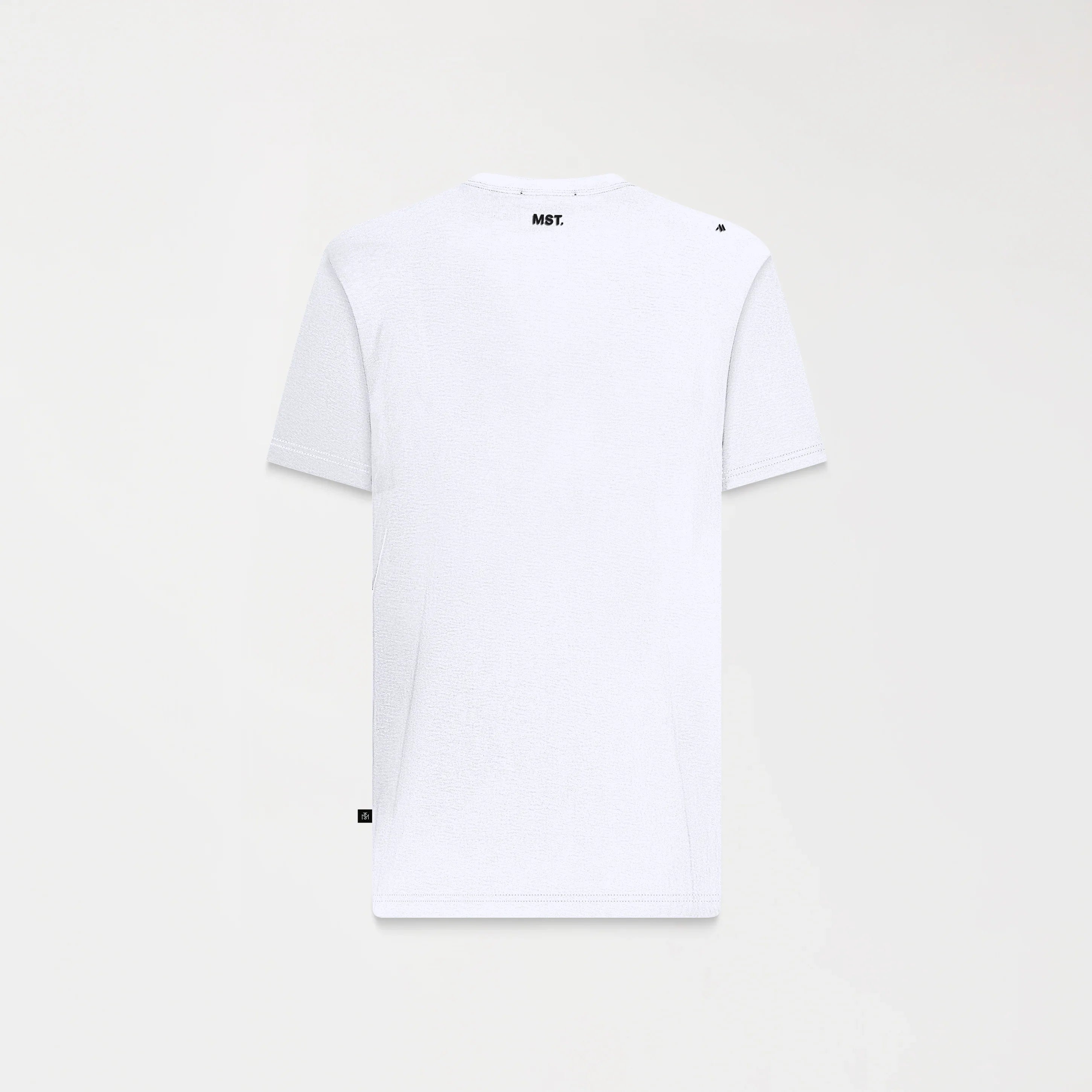 York es una t-shirt masculina confeccionada en algodón pima de la más alta calidad. Su silueta regular se equilibra con un tacto suave y fluido, mientras el cuello en rib de 2.5 cm aporta definición. El logo MST se presenta en técnicas flock y shimmer, generando textura y destellos sutiles tanto en el frente como en la espalda. Una pieza esencial que transforma lo cotidiano en sofisticación gráfica..