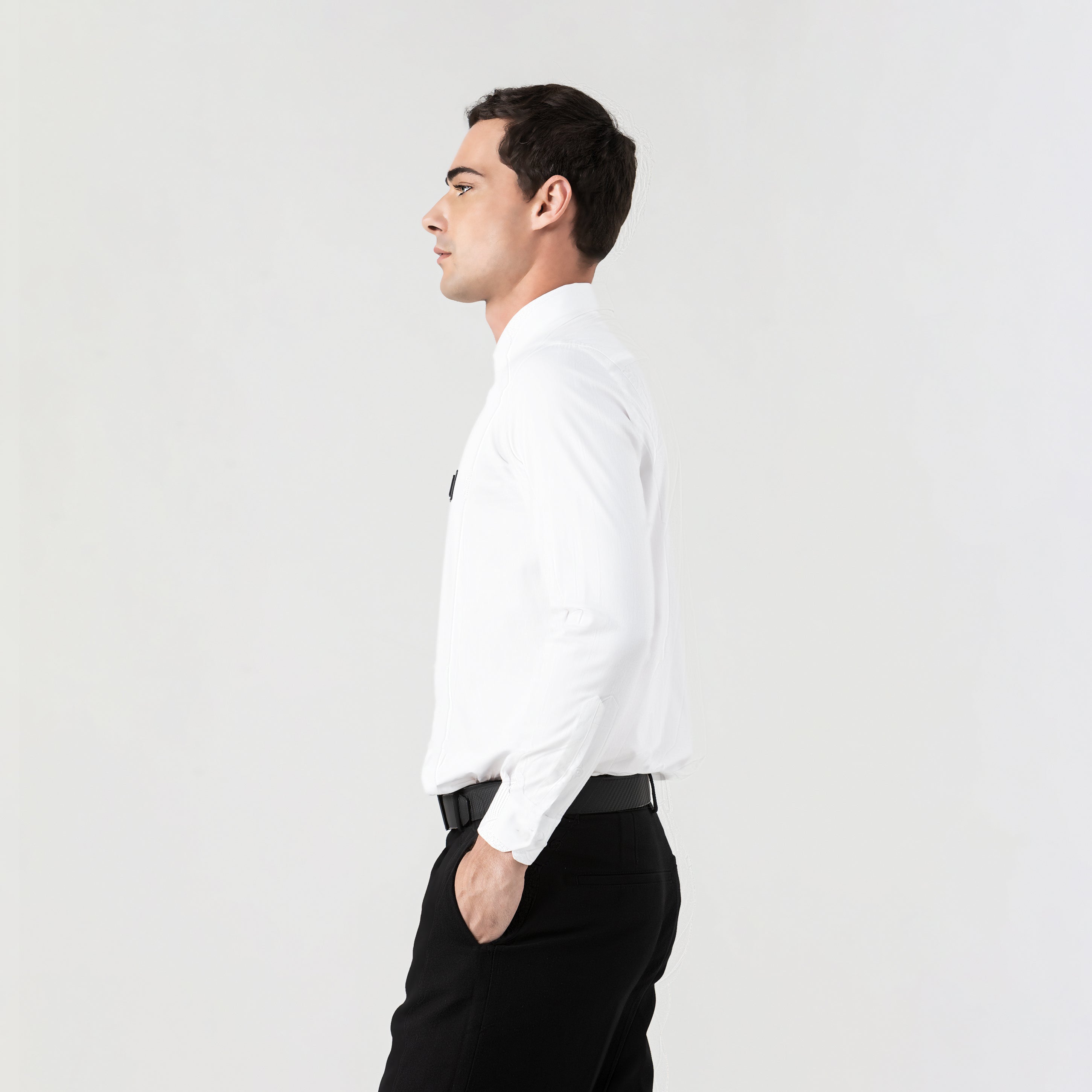 Yoshiro es una shirt masculina manga larga. Minimalista y con carácter, la shirt Yoshiro está confeccionada en suave algodón con elastano para un ajuste cómodo y fluido. Su silueta regular se complementa con un aplique metálico en el frente que aporta un toque moderno y distintivo. El logo insignia se revela discretamente en un bordado interno sobre la perilla, mientras el estampado en alta densidad en la espalda acentúa su identidad. Ideal para quienes buscan una prenda versátil con una estética limpia, tanto en contextos formales como casuales.